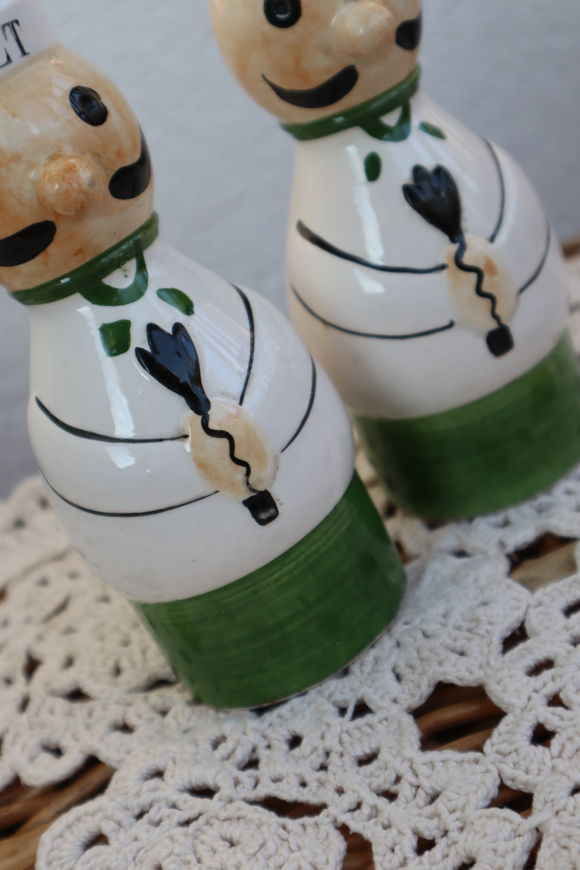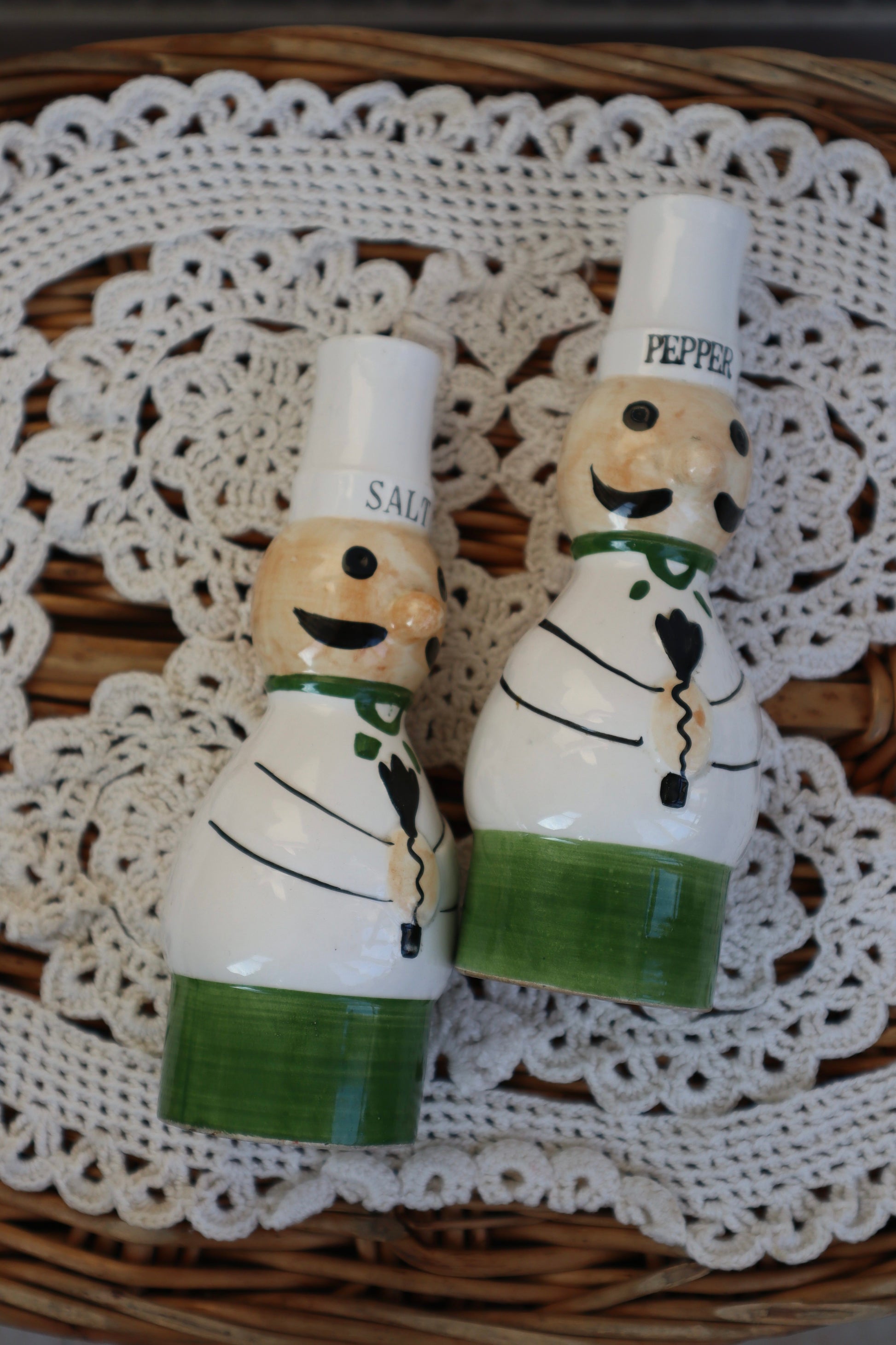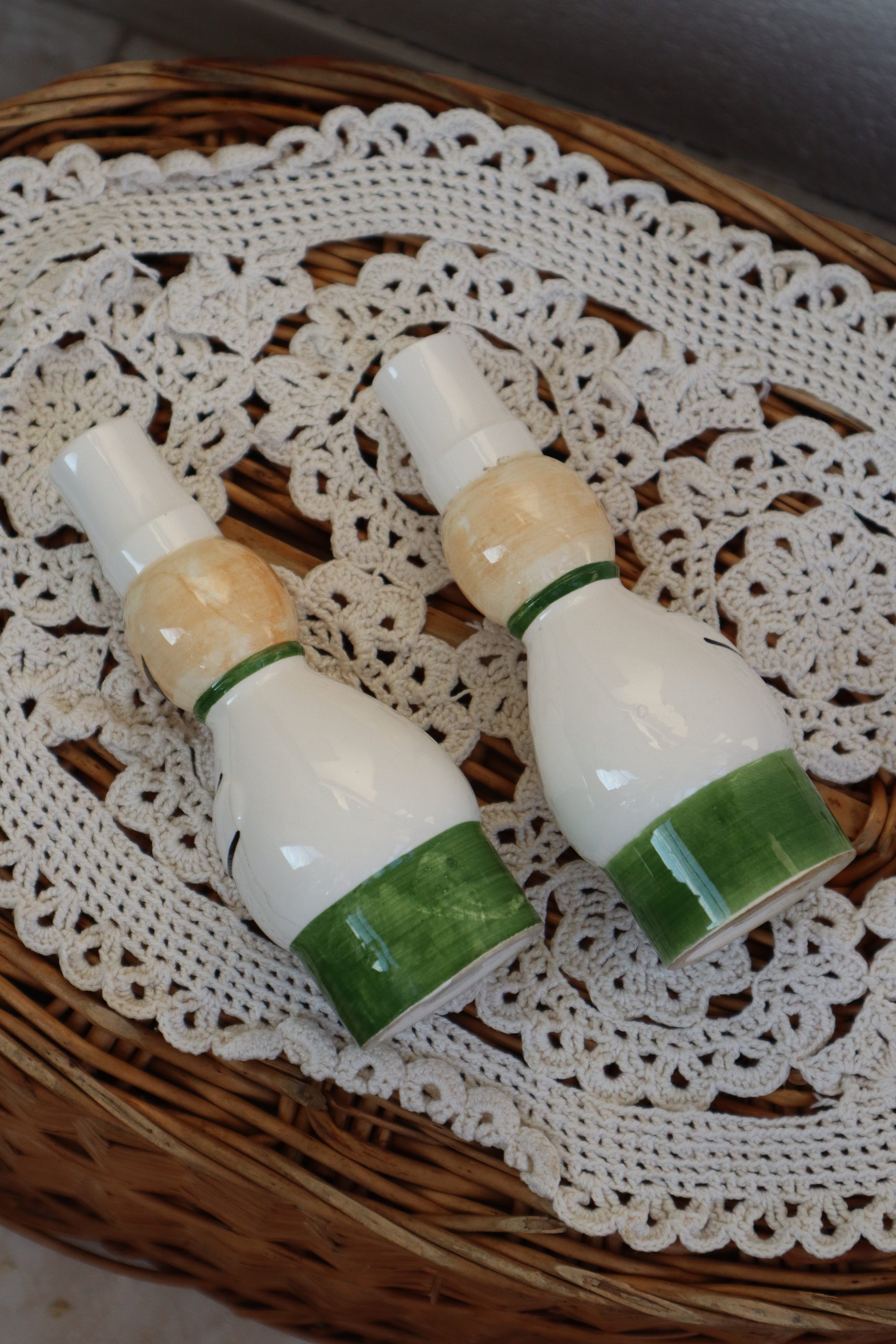 Solniță și piperniță vintage din ceramică pictate manual