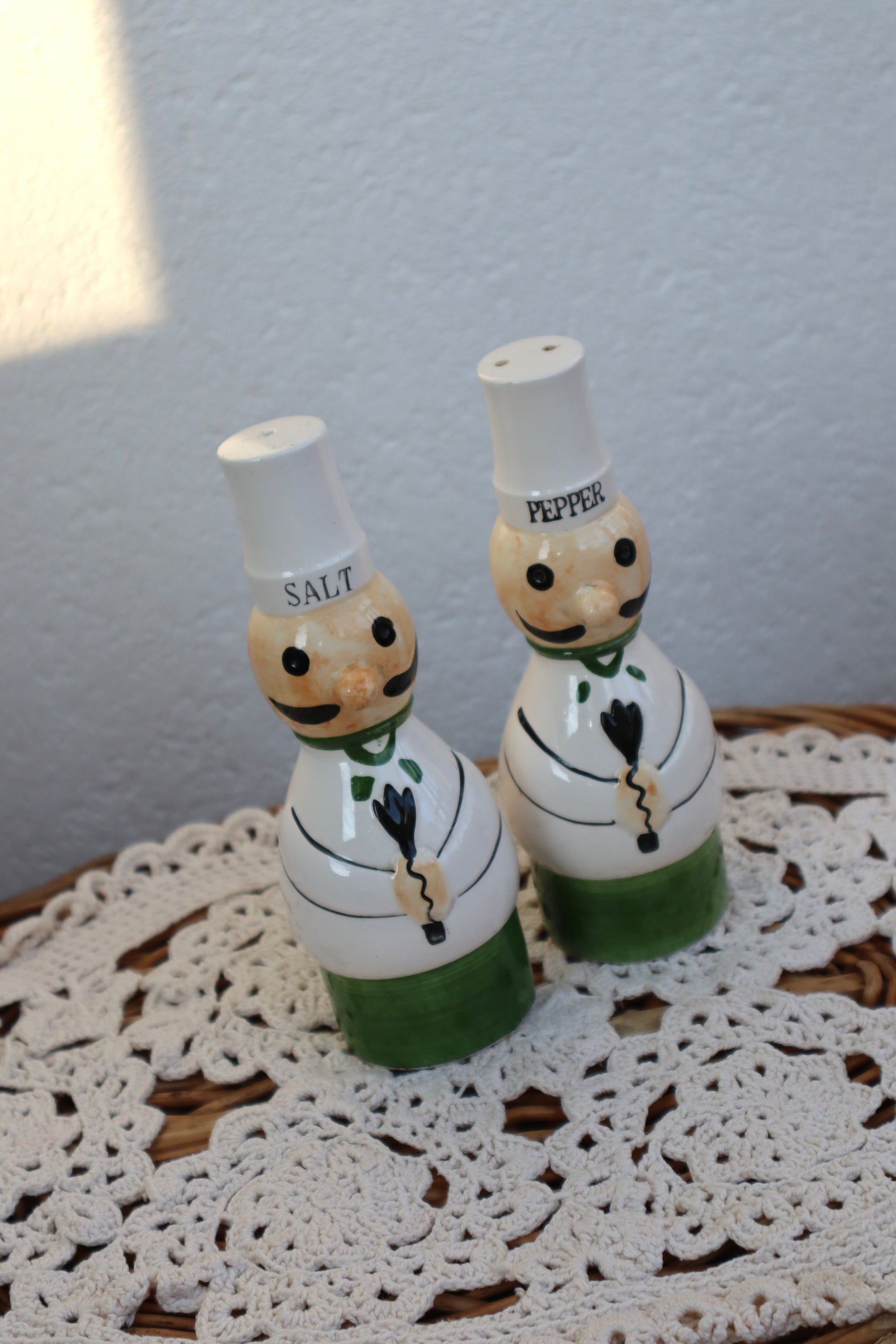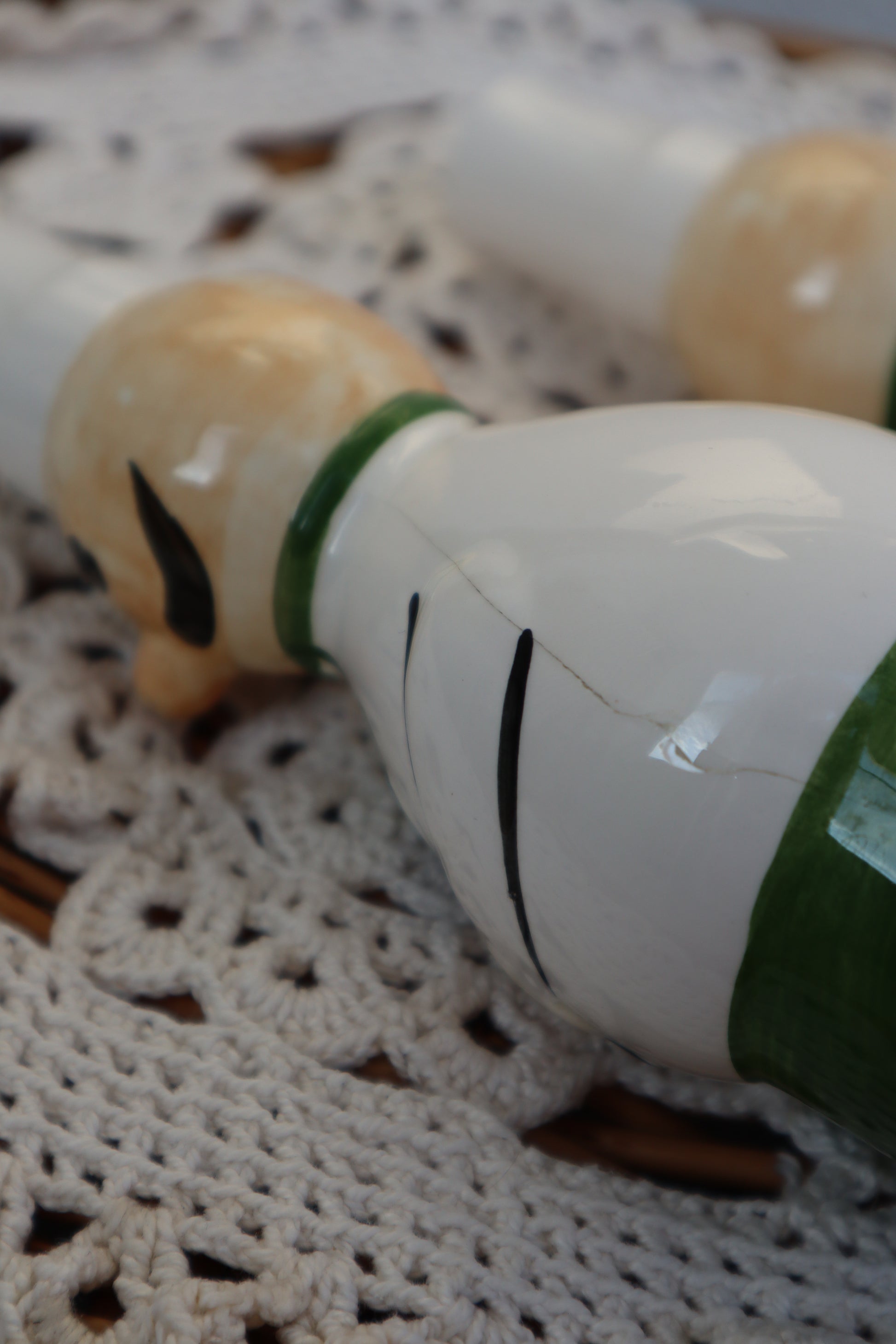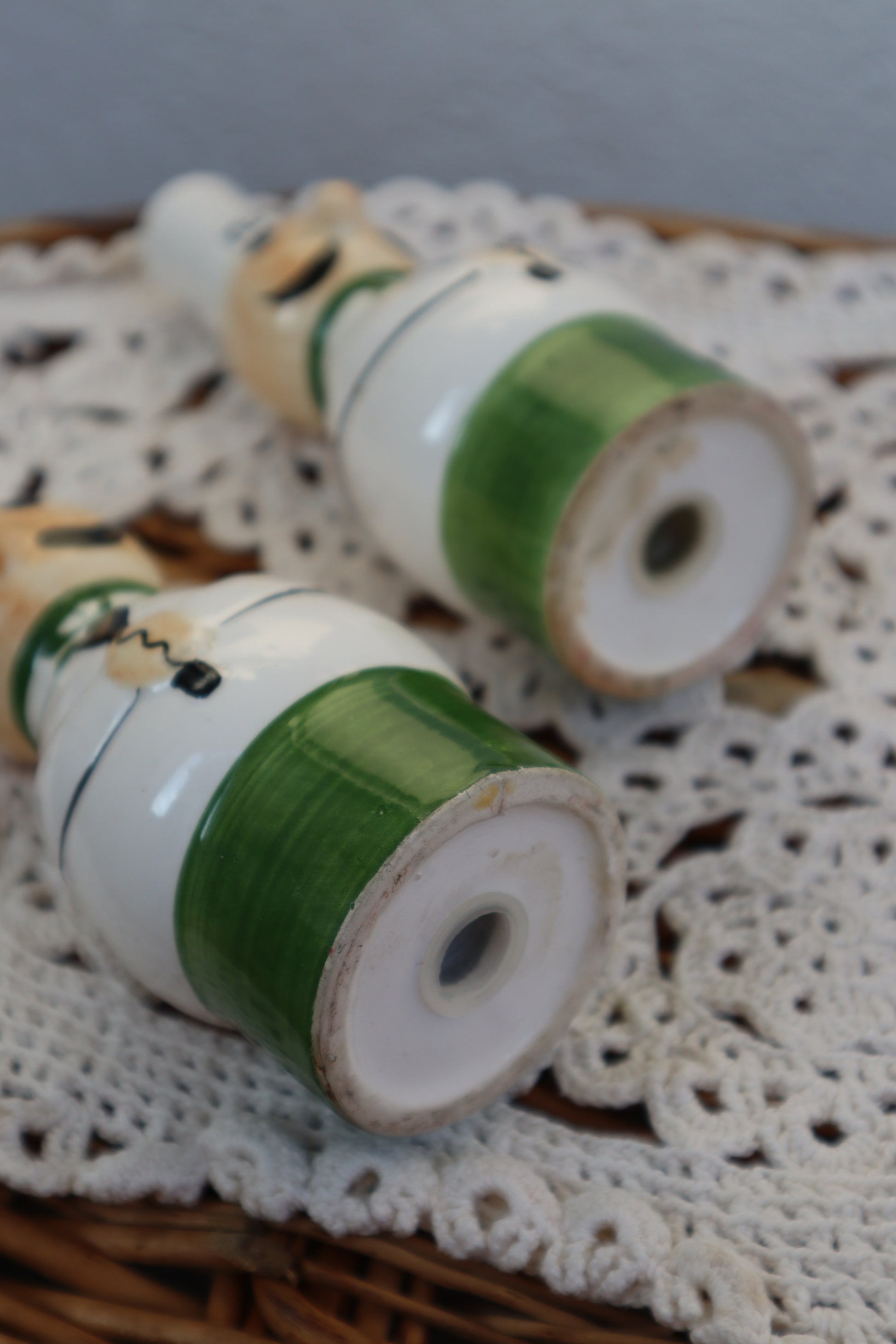 Solniță și piperniță vintage din ceramică pictate manual