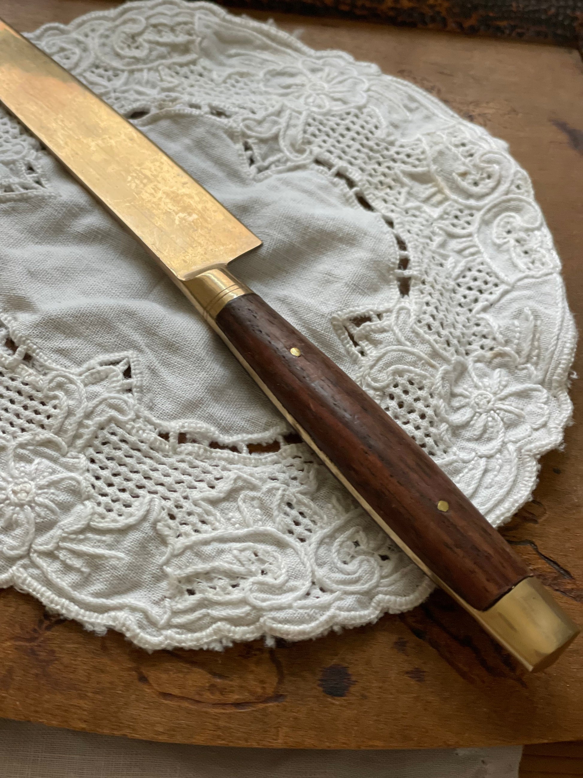 Tacâmuri mid-century care combină eleganța alamei lucioase cu căldura lemnului de trandafir, rezultând piese de colecție cu caracter distinct. Fiecare tacâm a fost executat cu precizie, evidențiind măiestria perioadei și atenția acordată proporțiilor ergonomice. Starea impecabilă și finisajul rafinat le recomandă atât colecționarilor de design vintage, cât și celor care apreciază obiectele funcționale cu valoare estetică. O investiție în eleganță atemporală și calitate superioară.