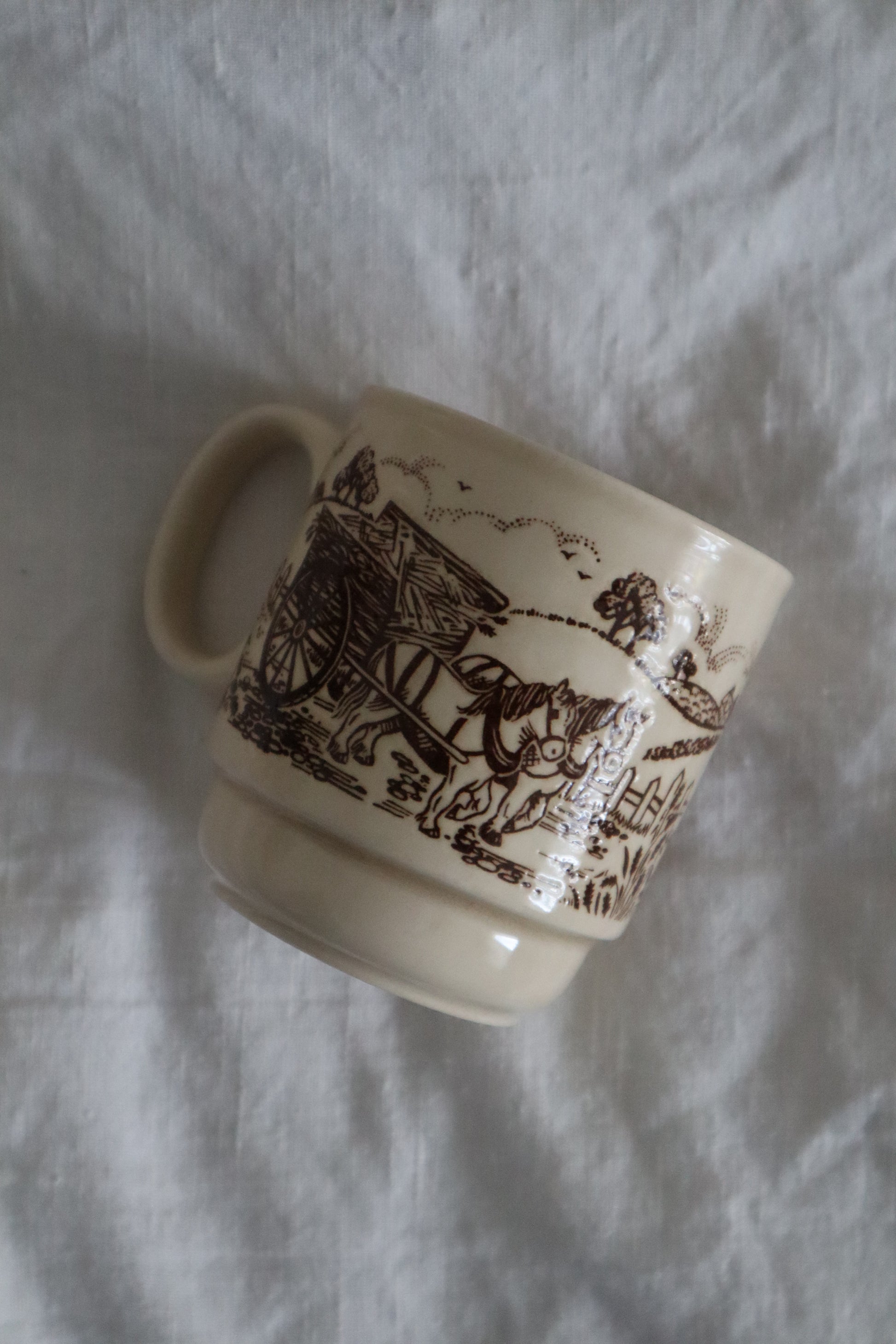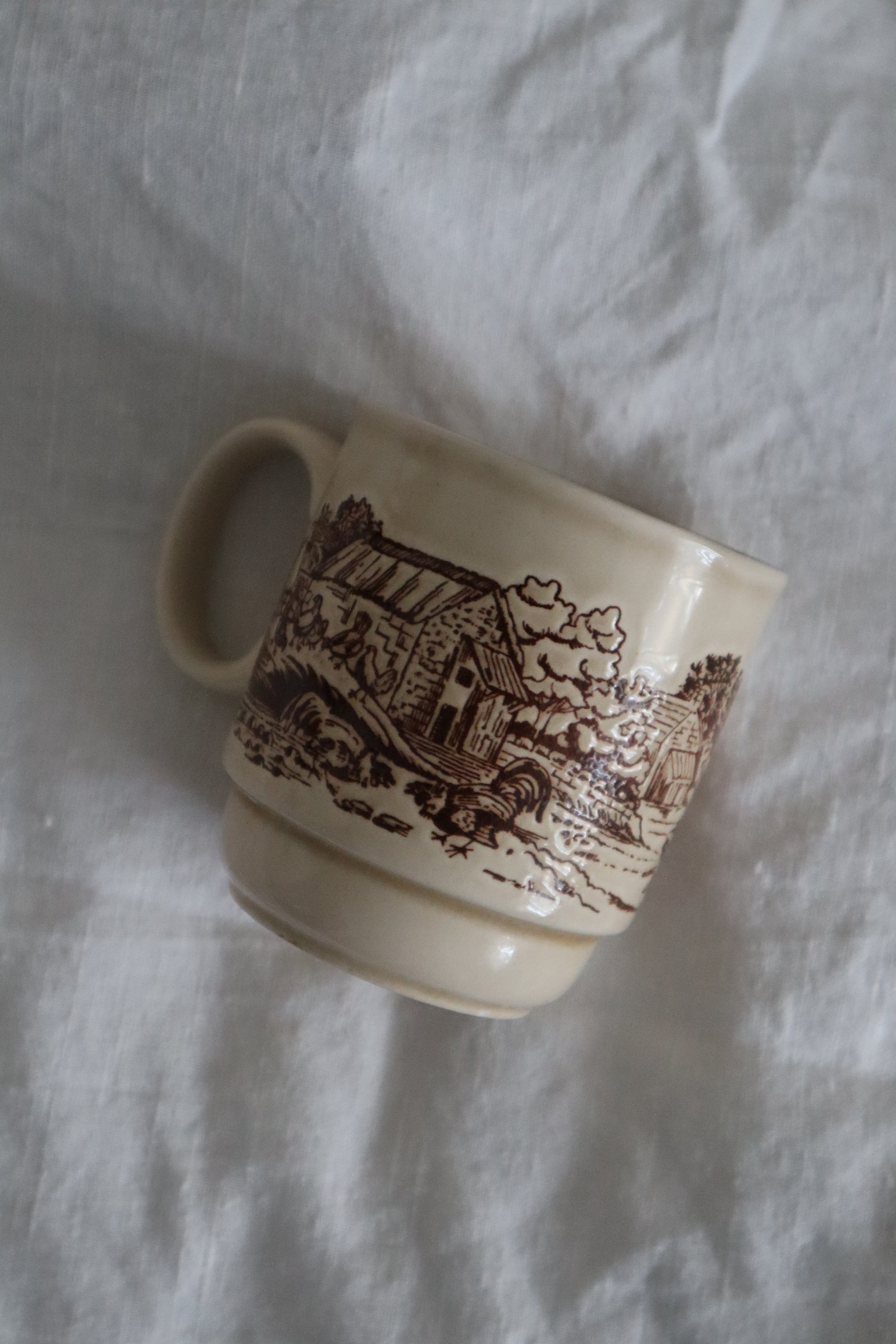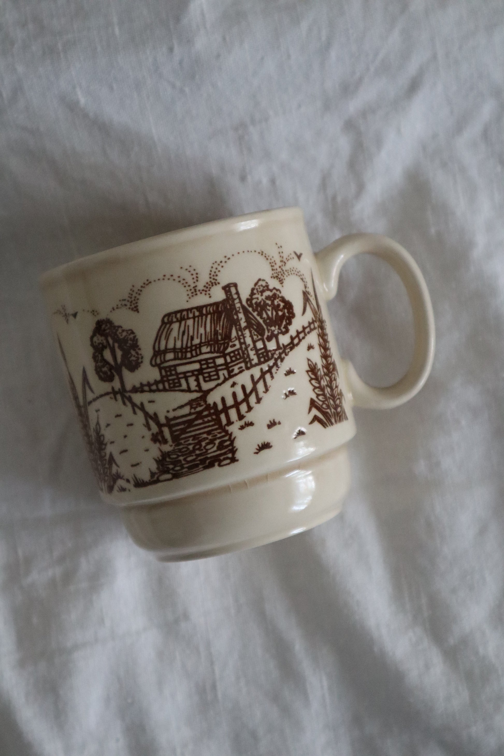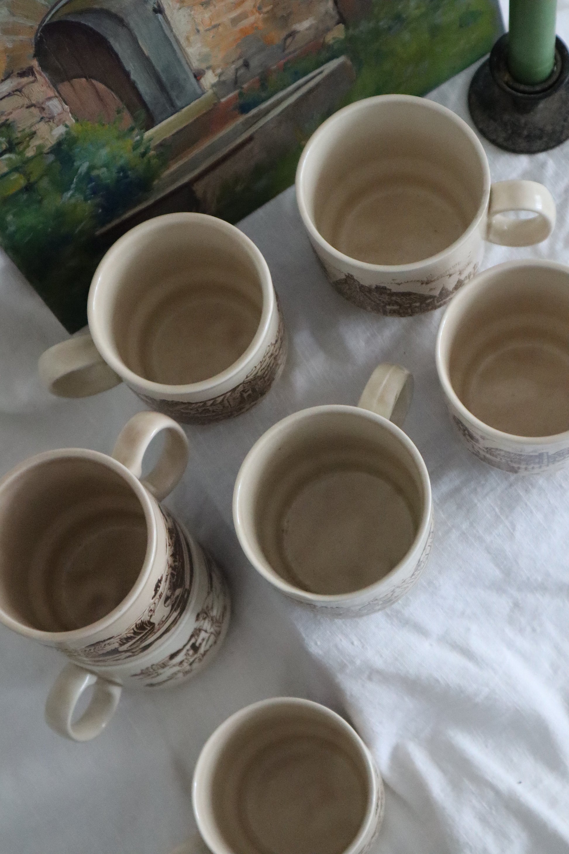 Căni din ceramică vintage countryside cu peisagistică, diferite modele.