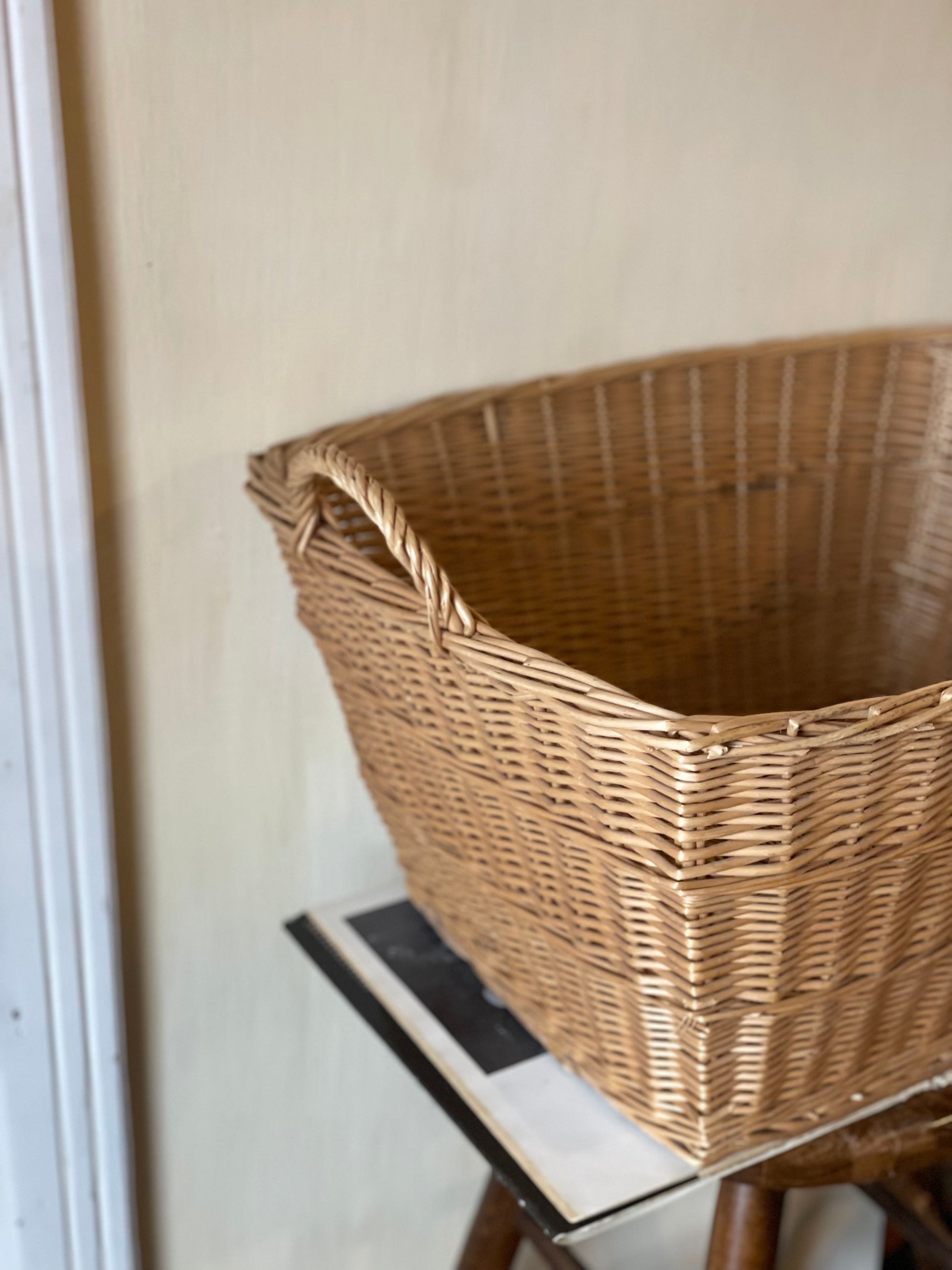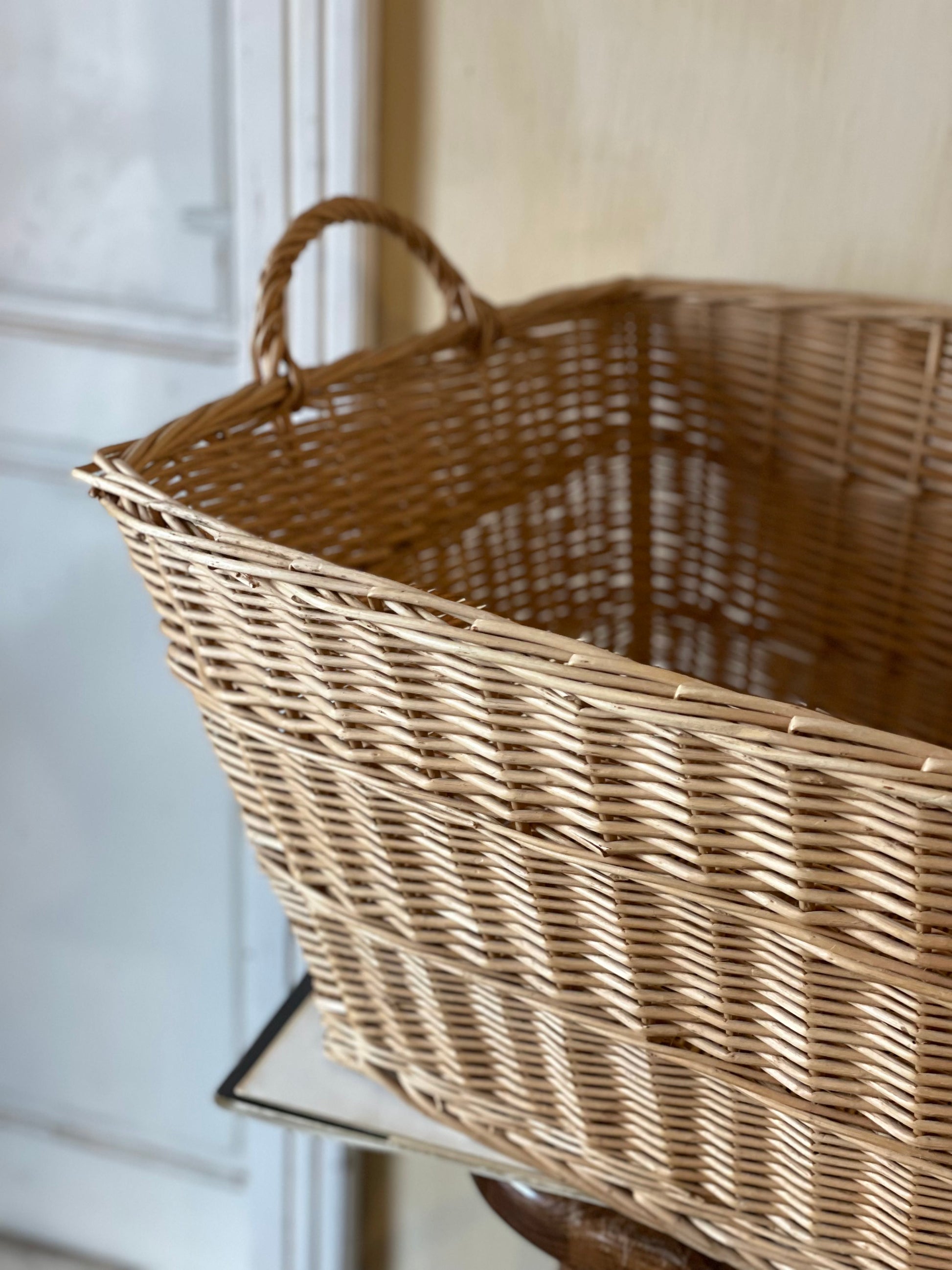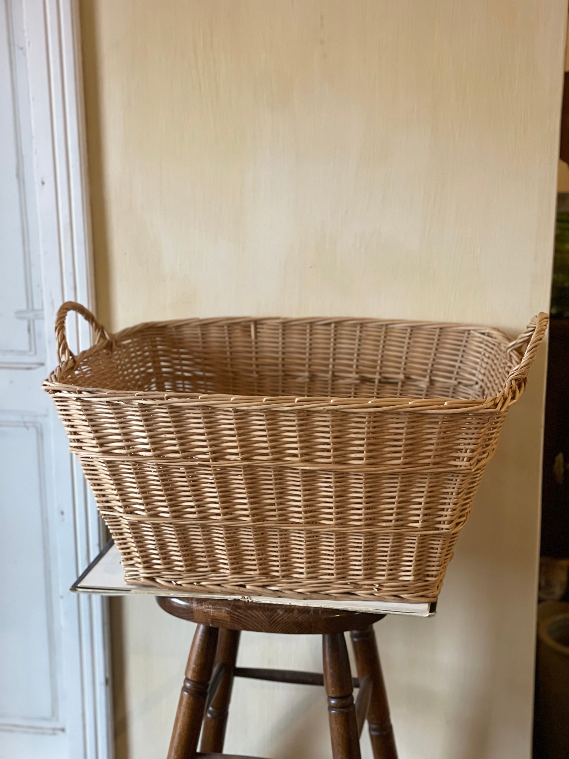 Coș vintage cu mânere pentru depozitare diverse(pături, textile, lemne, jucării), lucrat manual.