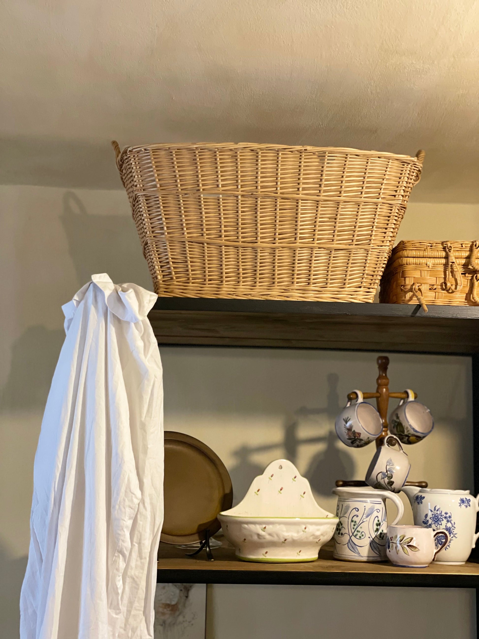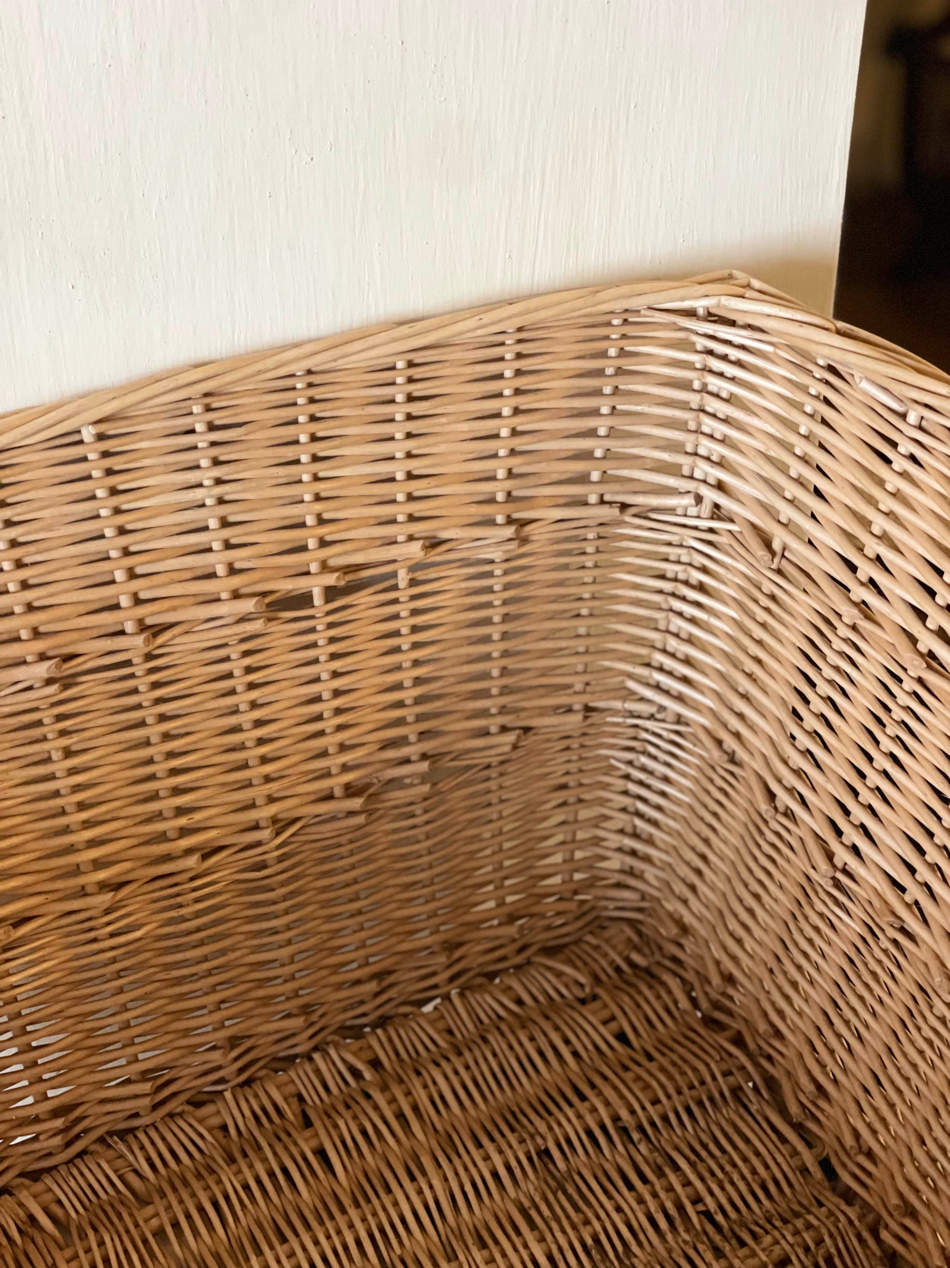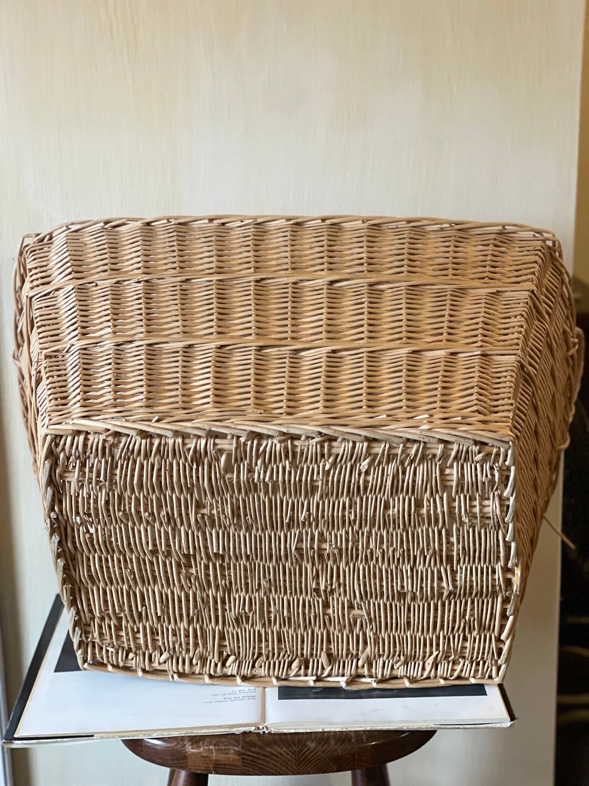 Coș vintage cu mânere pentru depozitare diverse(pături, textile, lemne, jucării), lucrat manual.