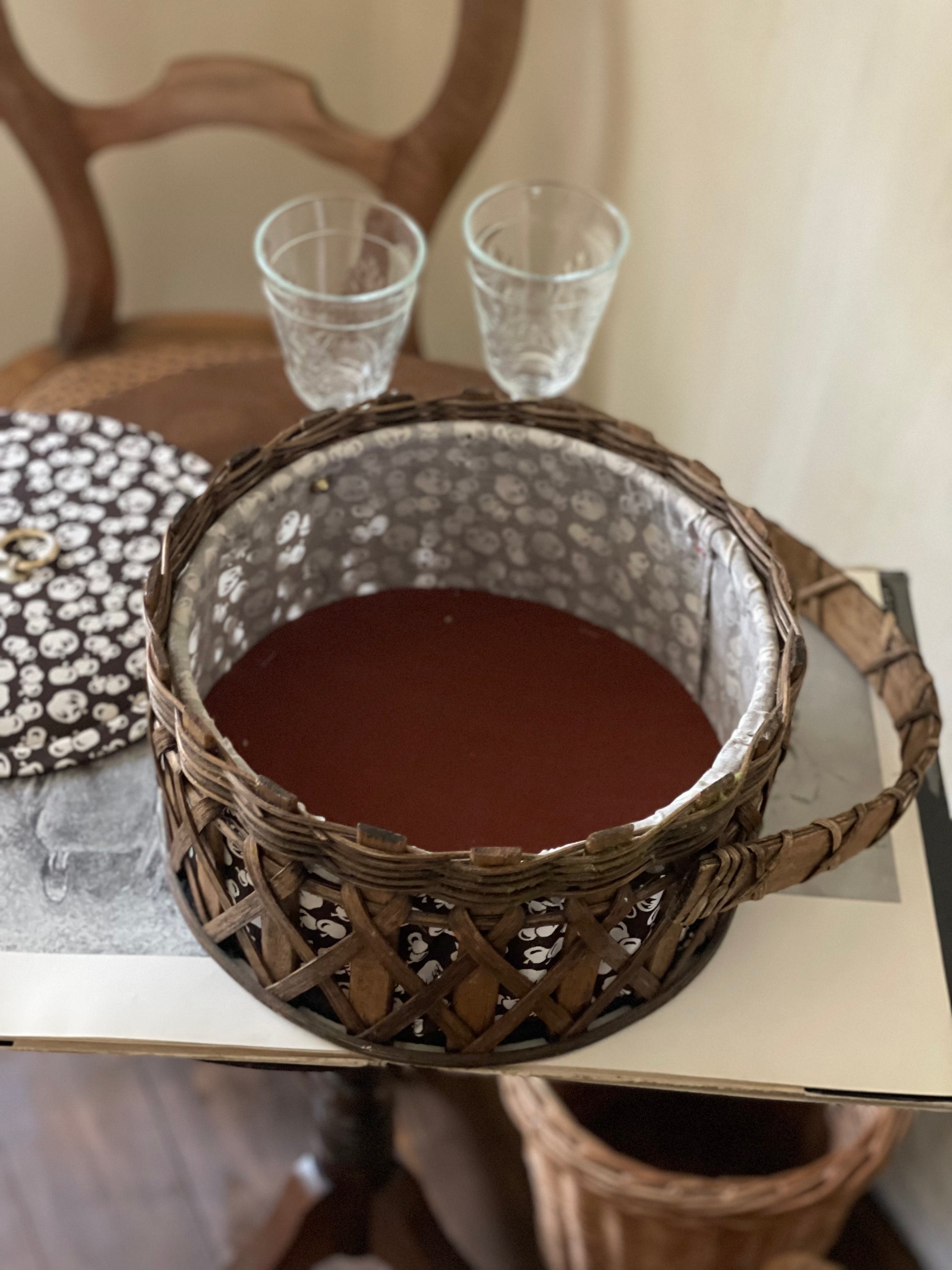 Cutie/coș vintage de cusut din ratan