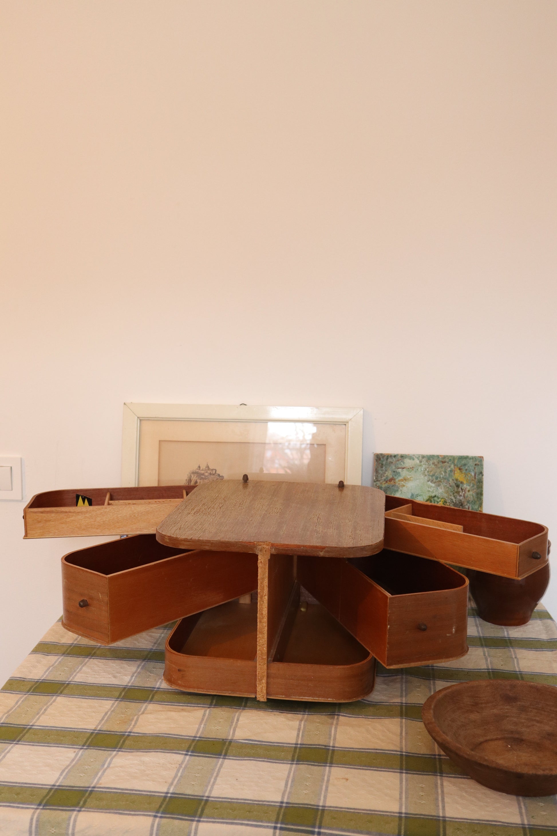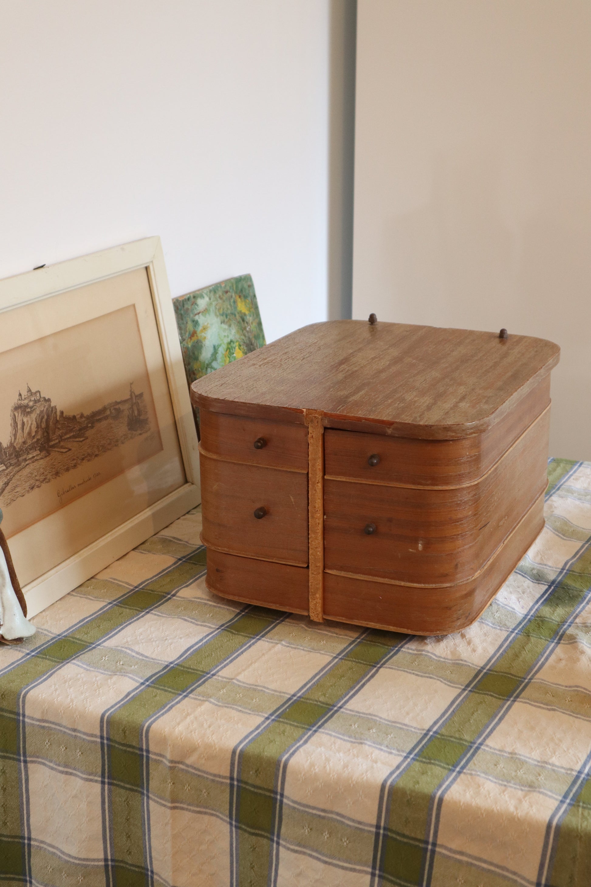 Cutie daneză pentru accesorii de cusut din lemn de tec