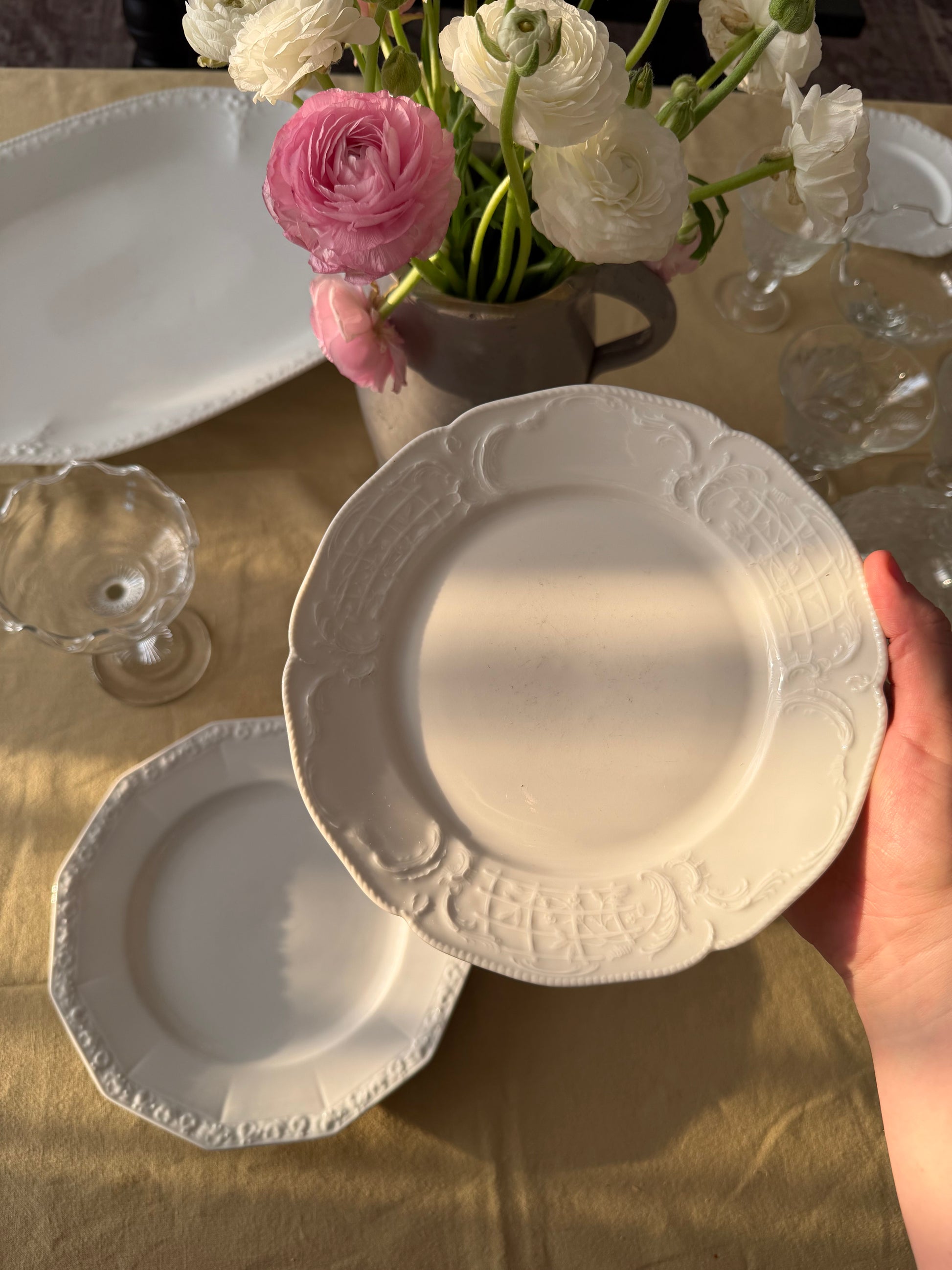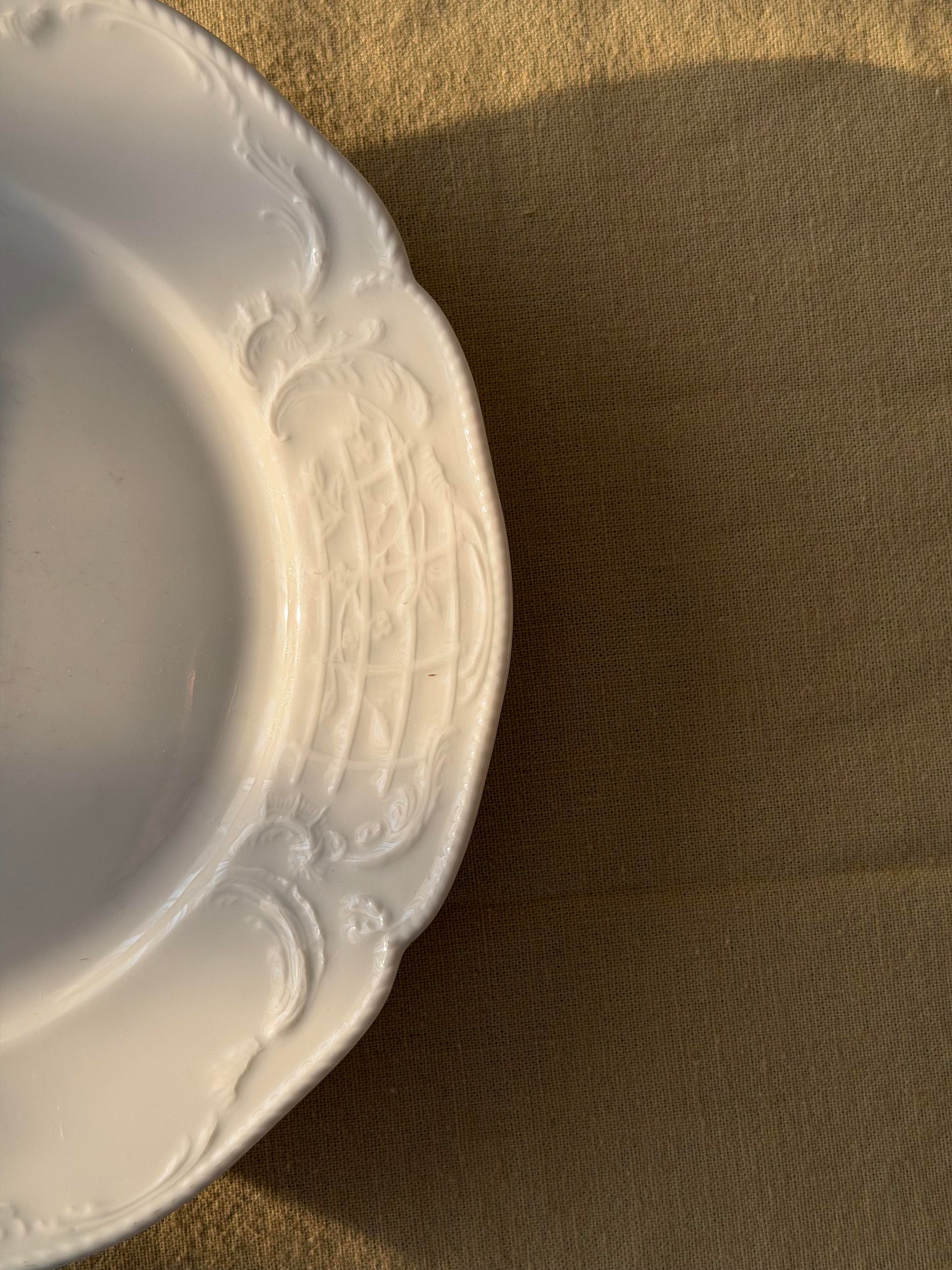 Farfurie medie din porțelan Rosenthal Sanssouci Ivory, o piesă de colecție care poartă semnătura eleganței rococo. Designul este inspirat din decorațiunile în stuc ale tavanului palatului Sanssouci din Potsdam, transpunând rafinamentul arhitectural într-un obiect de uz cotidian. Realizată din porțelan de înaltă calitate, această farfurie combină funcționalitatea cu valoarea artistică. Tonul ivory discret și detaliile ornamentale o fac potrivită atât pentru mese festive cât și pentru colecționari de piese vintage cu caracter. Fiind o piesă cu istoric, farfuria prezintă urme vizibile de folosință care adaugă autenticitate și poveste fiecărui obiect (vezi poze).