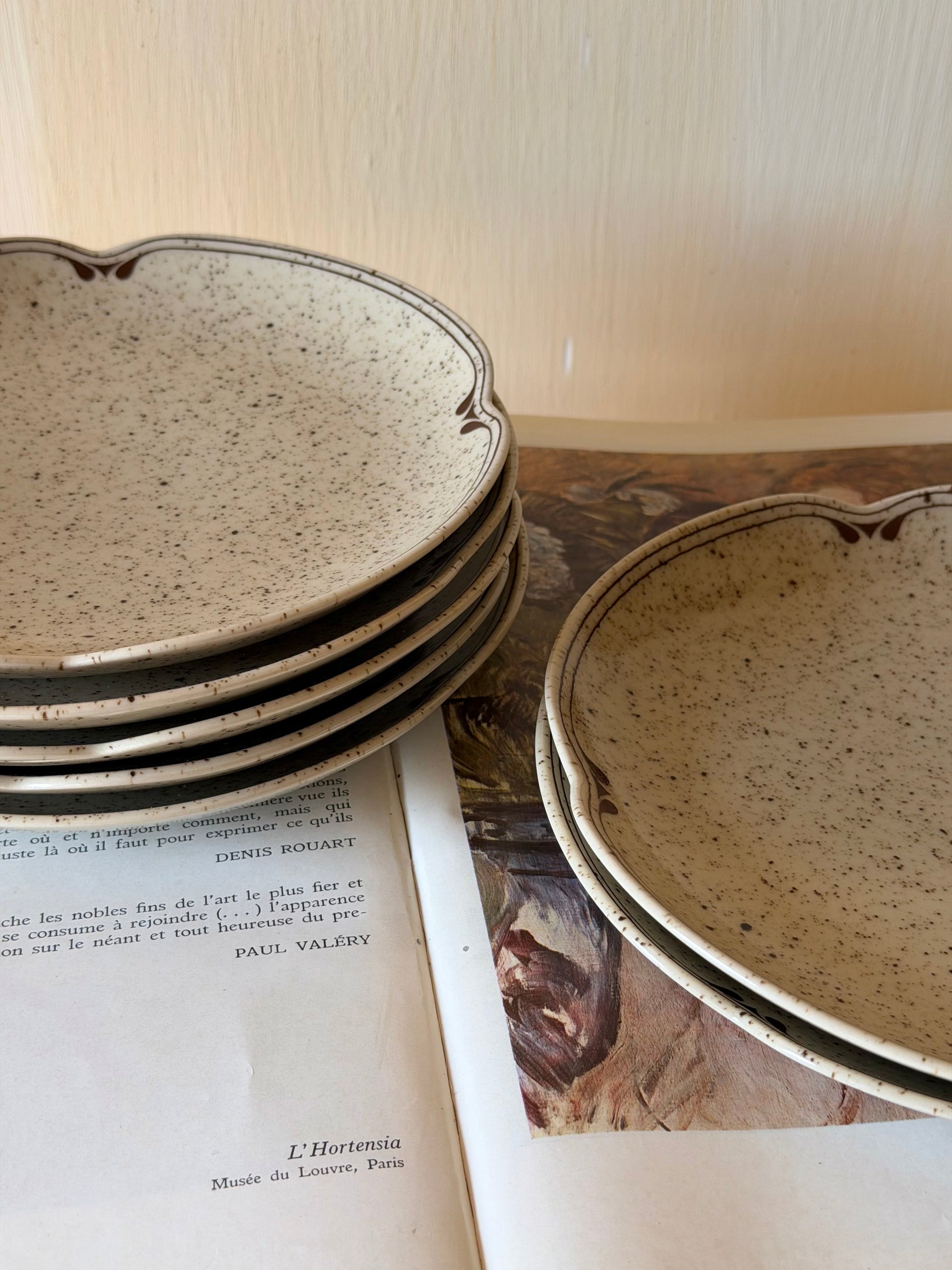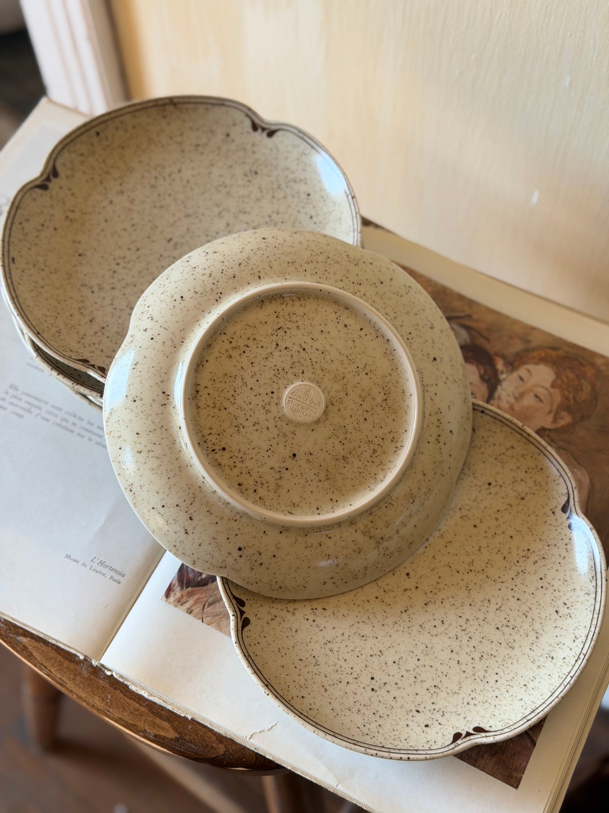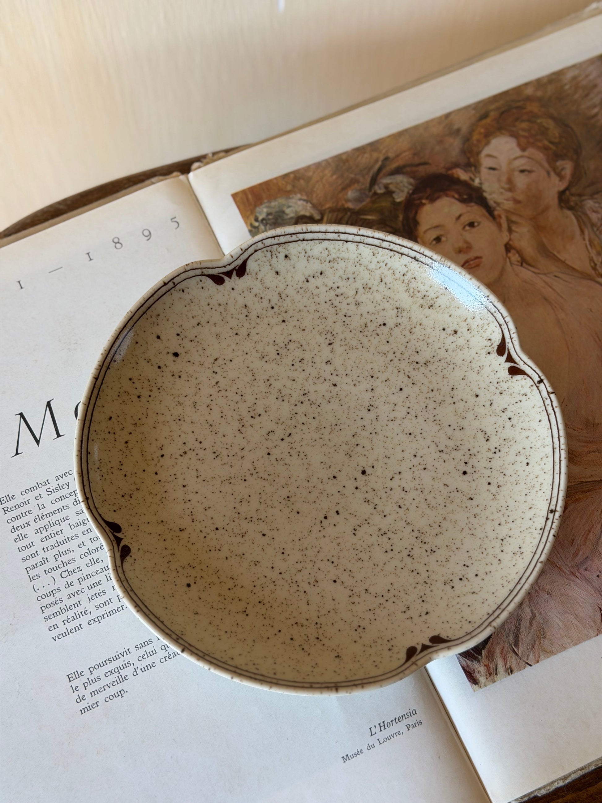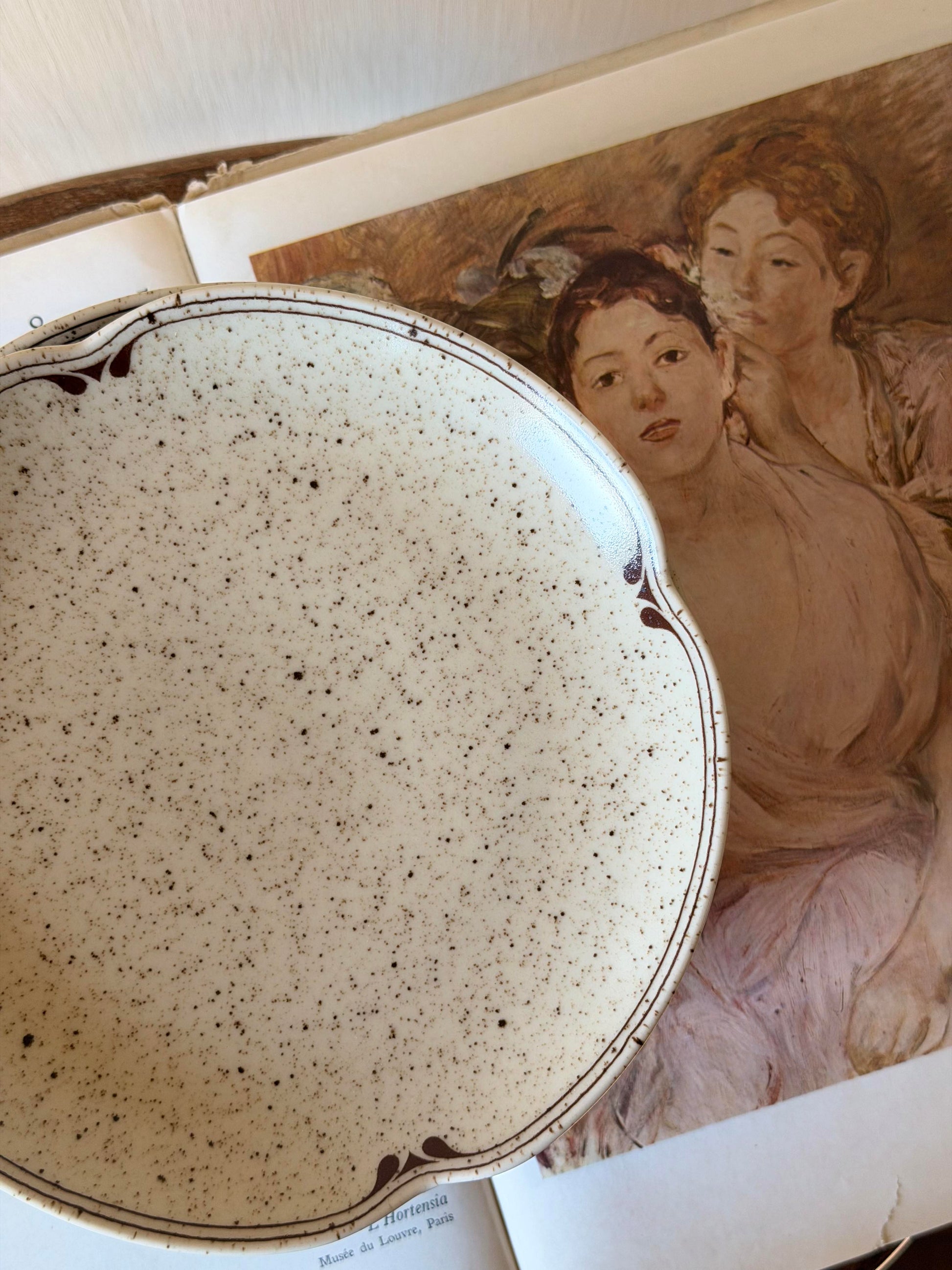 Farfurii vintage Rosenthal din colecția designerului Bjørn Wiinblad, datând din 1970. Piesele se remarcă prin forma ondulată unică și elegantă, creând o siluetă distinctivă care atrage privirea. Confecționate din material gros de calitate superioară, garantând durabilitate și rezistență în timp. Decorul pistruiat adaugă caracter și rafinament fiecărei farfurii, reflectând stilul artistic caracteristic perioadei. Ideale pentru colecționari de design vintage sau pentru cei care apreciază piesele de masă cu personalitate și istorie. Stare foarte bună, potrivite atât pentru expunere cât și pentru utilizare.