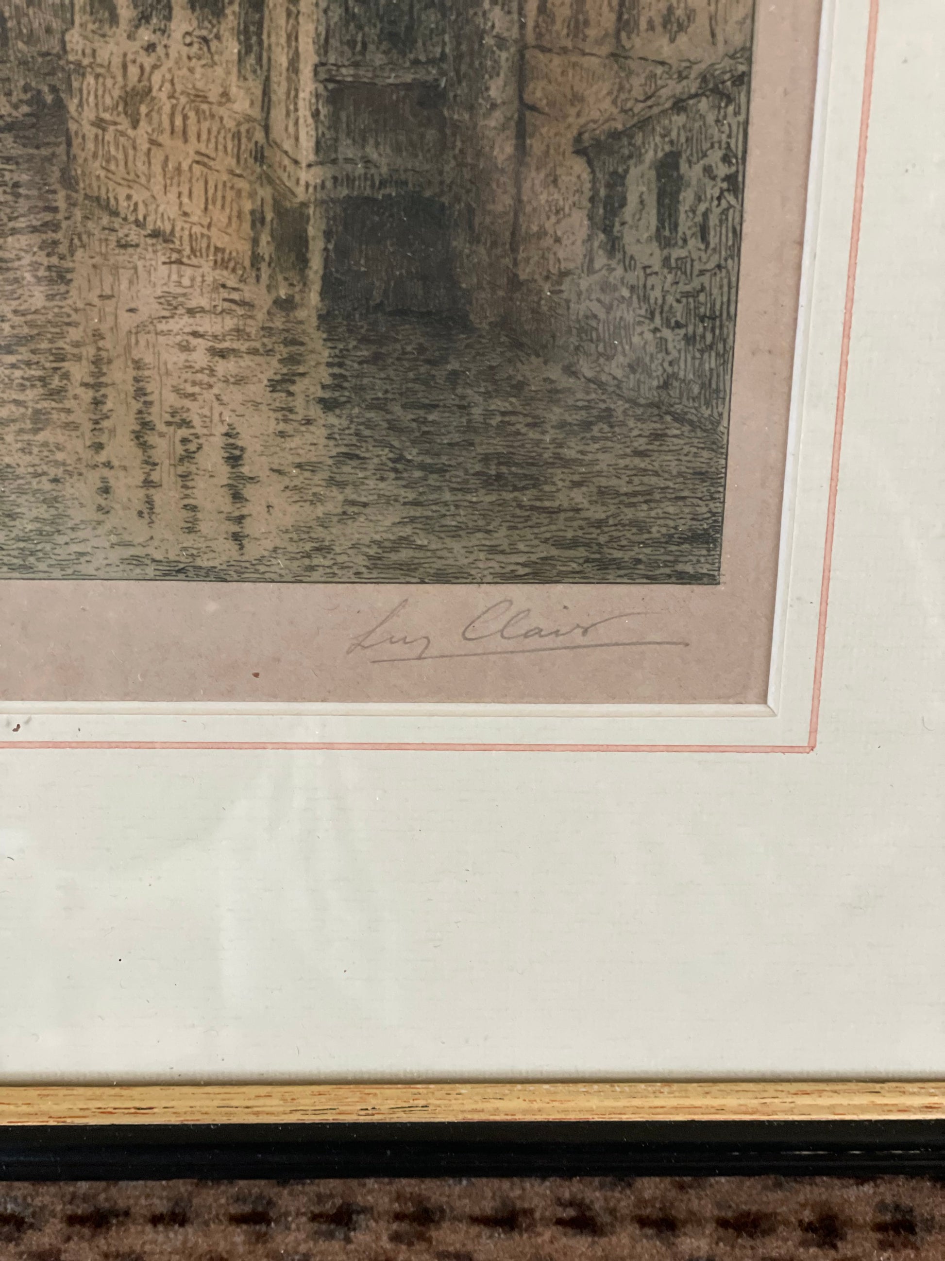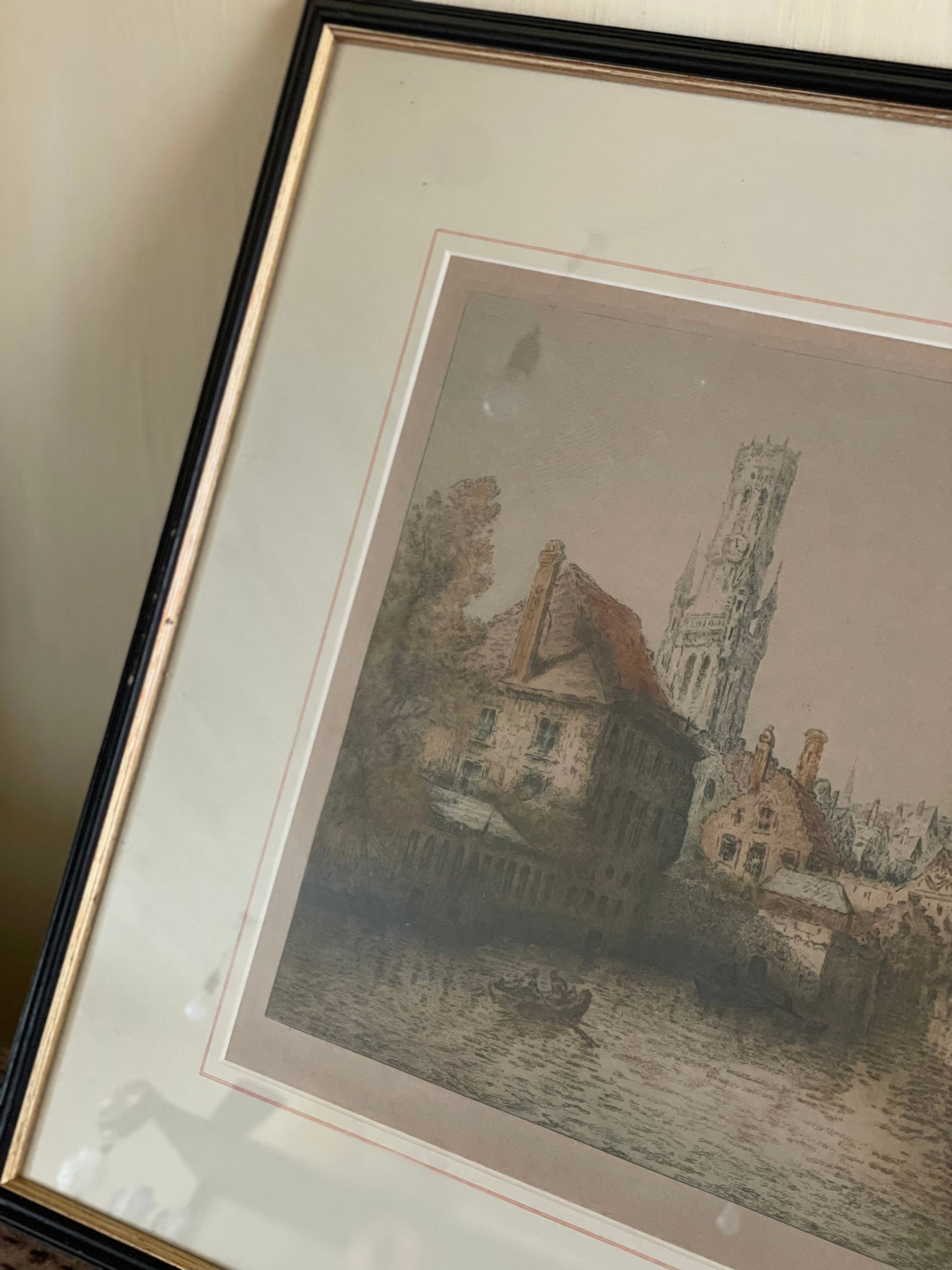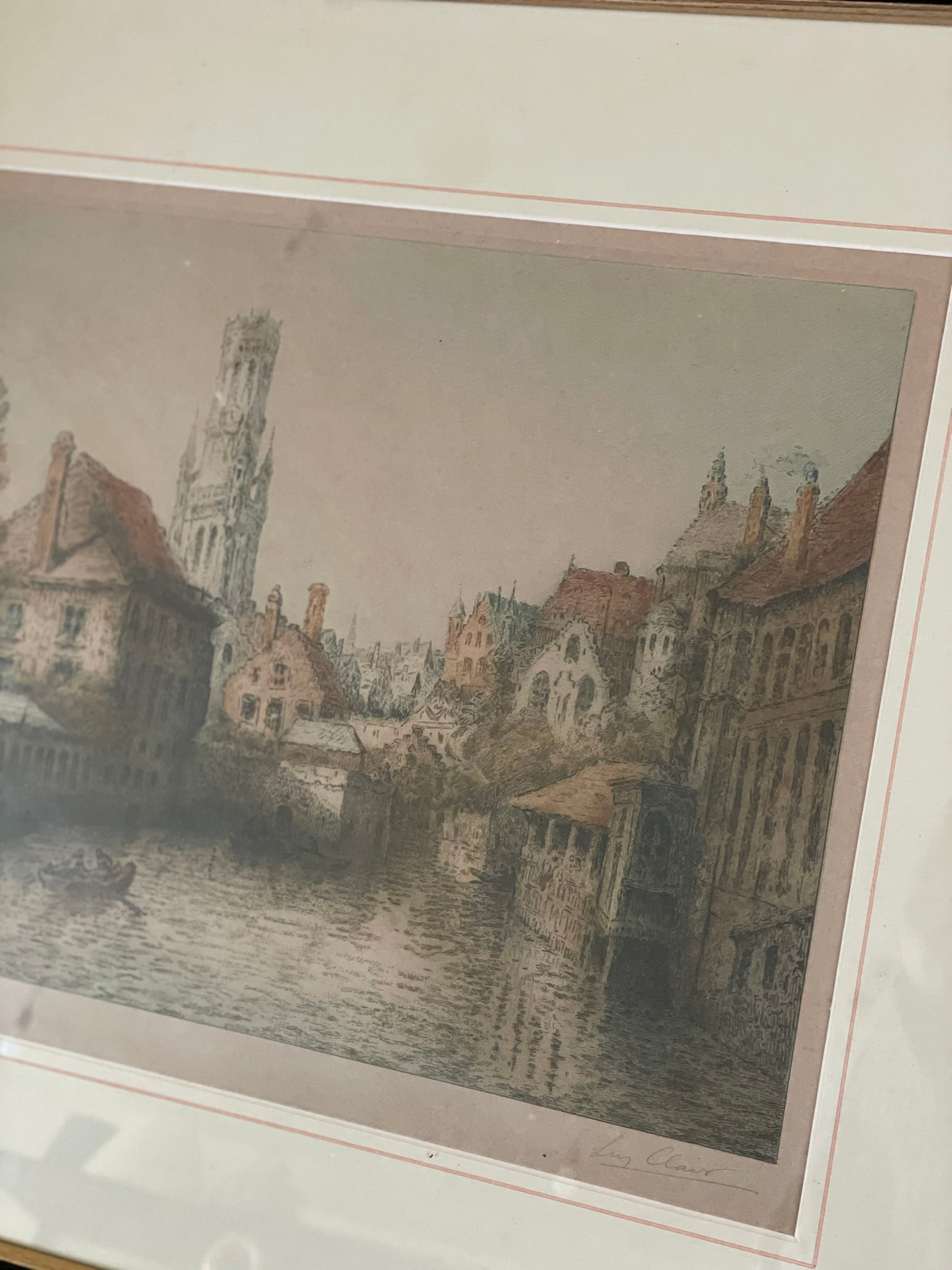 Gravură înrămată, peisaj urban, semnată