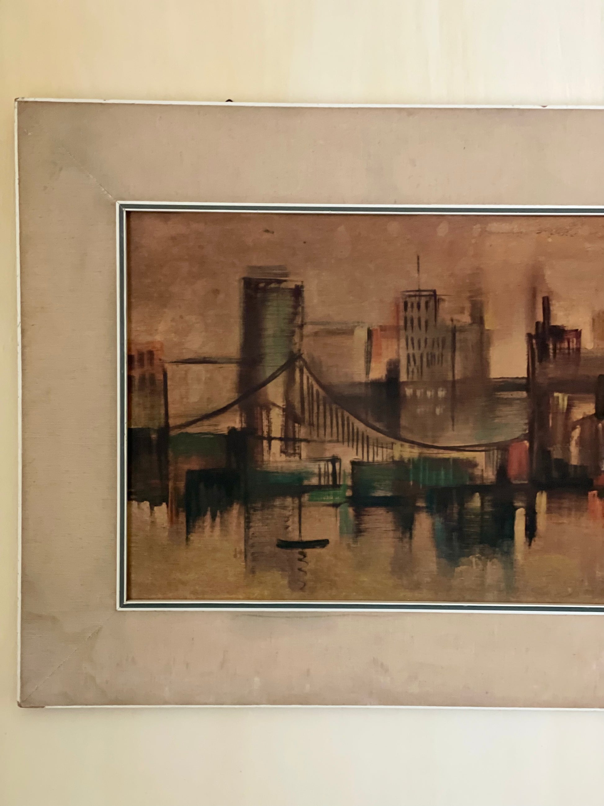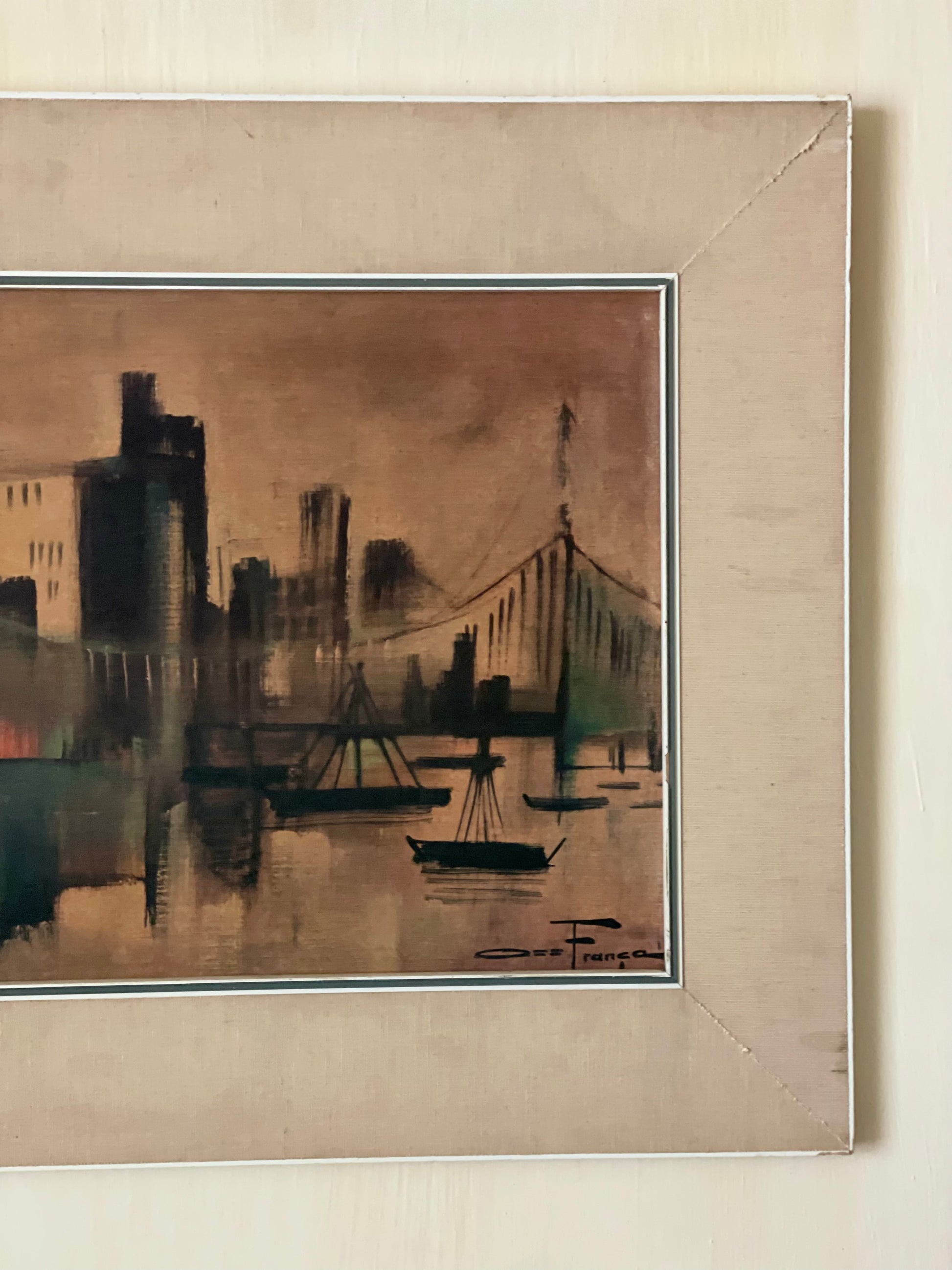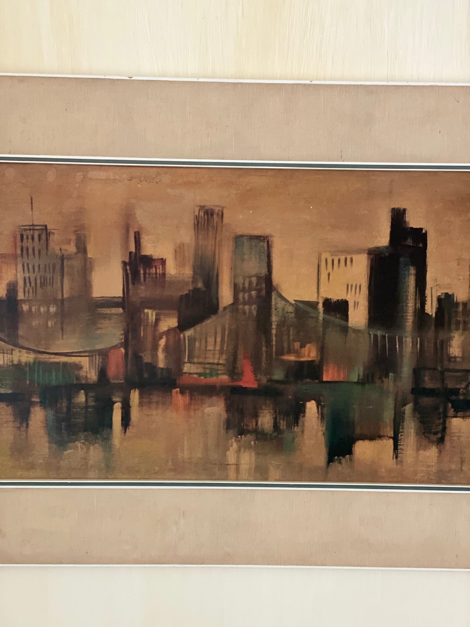 Peisaj urban modern, imprimare înrămată, Mid Century.