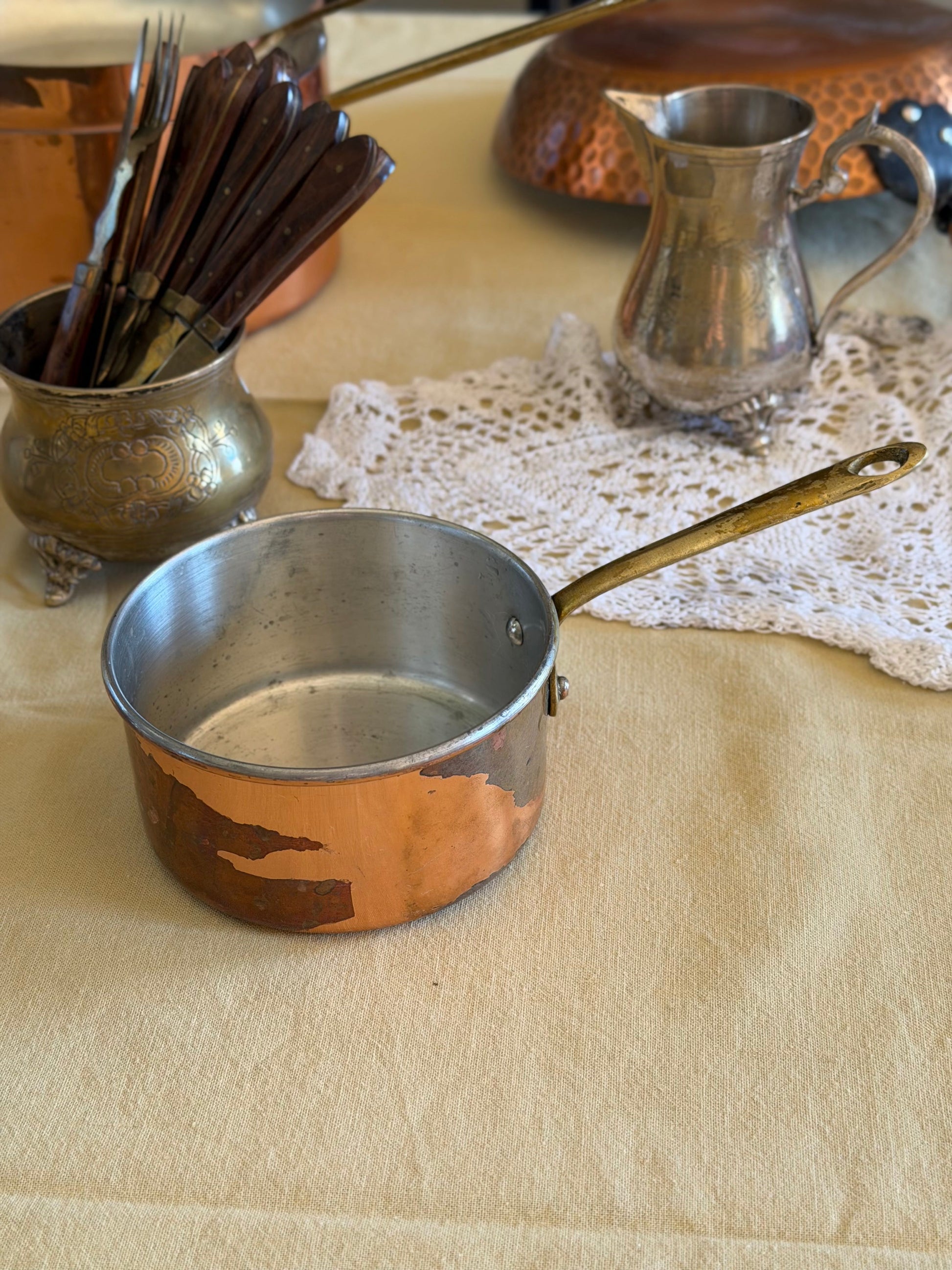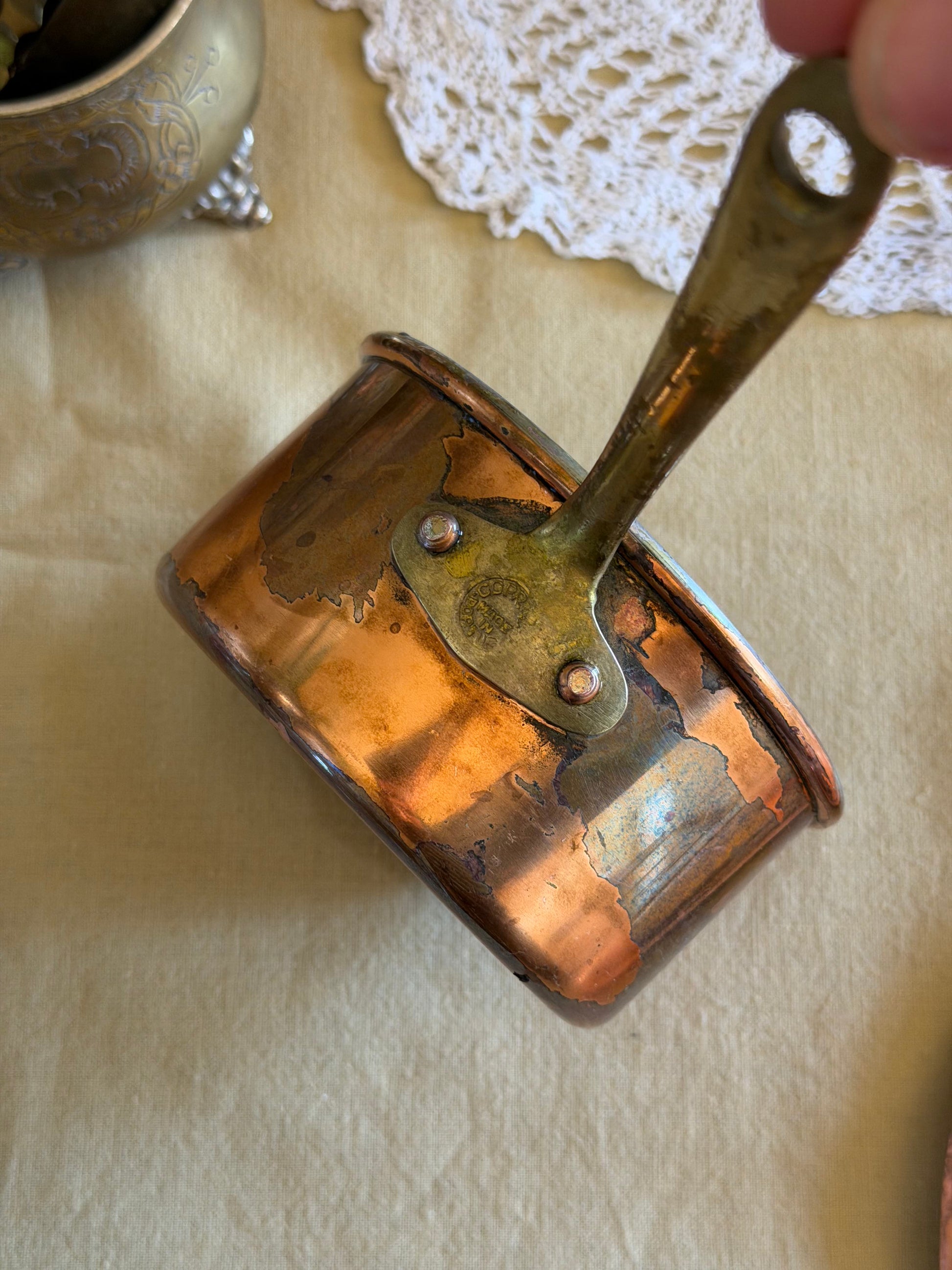 Mini tigaie vintage din cupru și alamǎ, made în Portugal