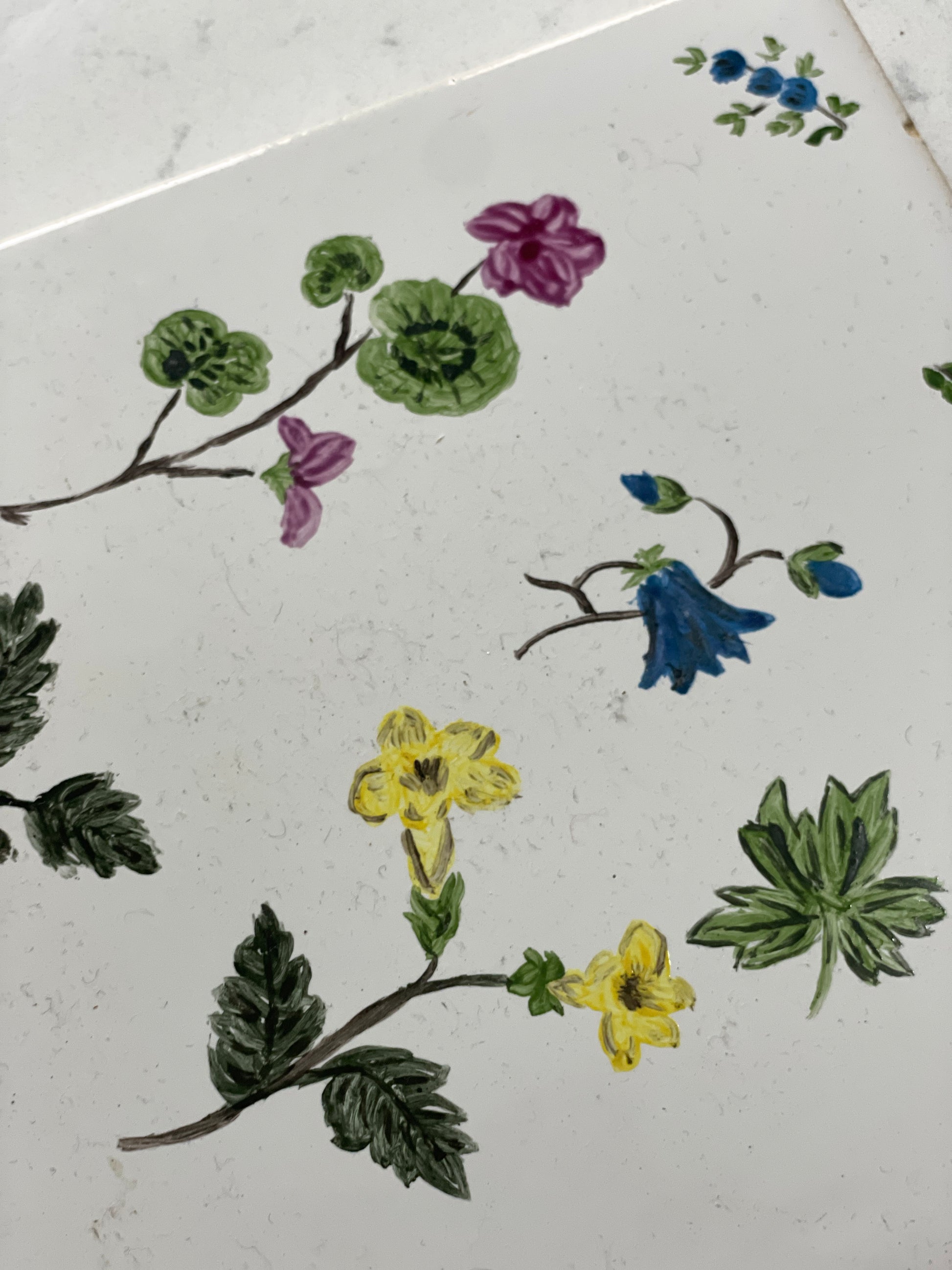 Placă din ceramică/suport pentru oale fierbinți, pictată manual, semnată.