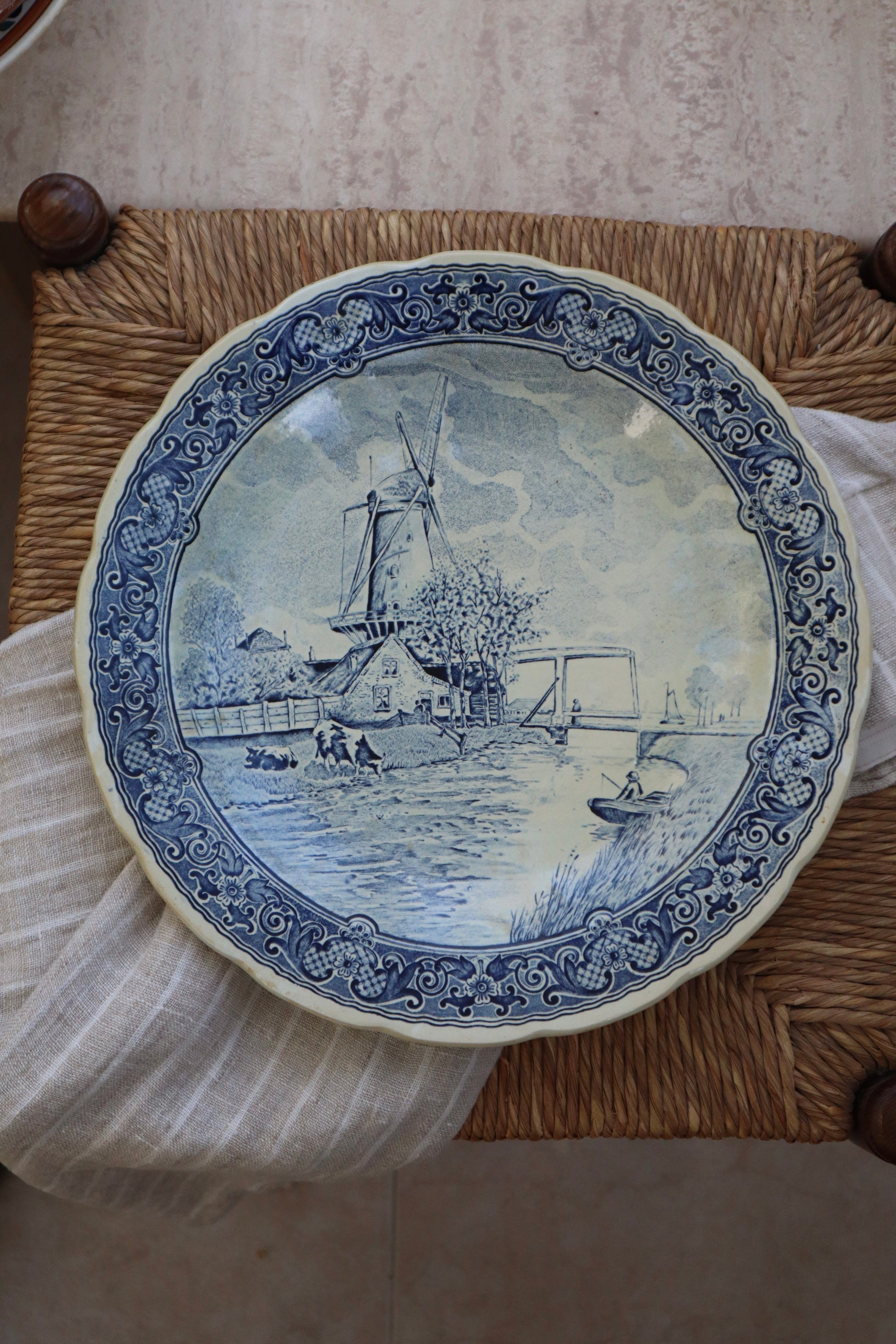 Platou/Farfurie mare din ceramică de colecție-Delfts by Boch, pictată manual