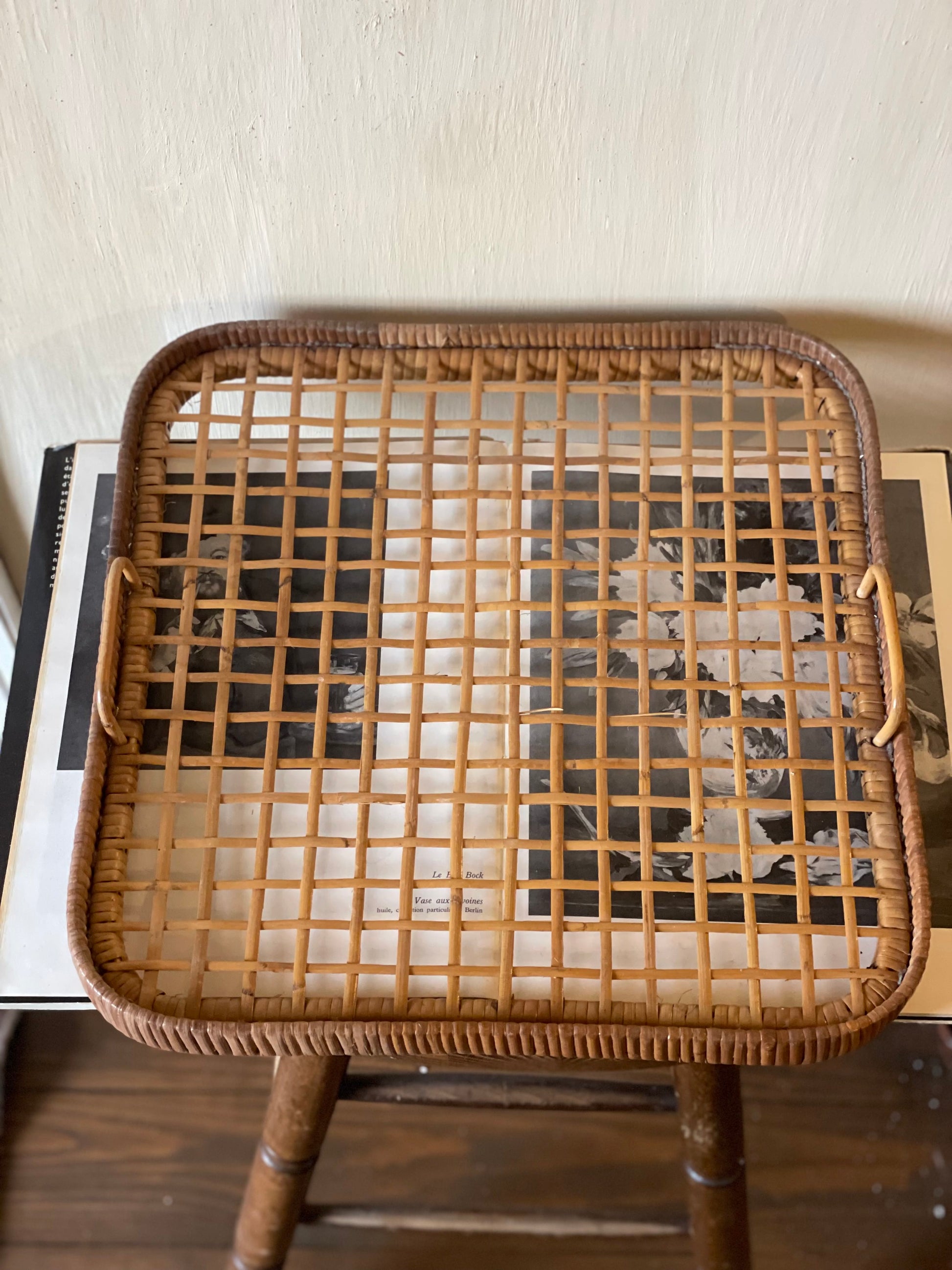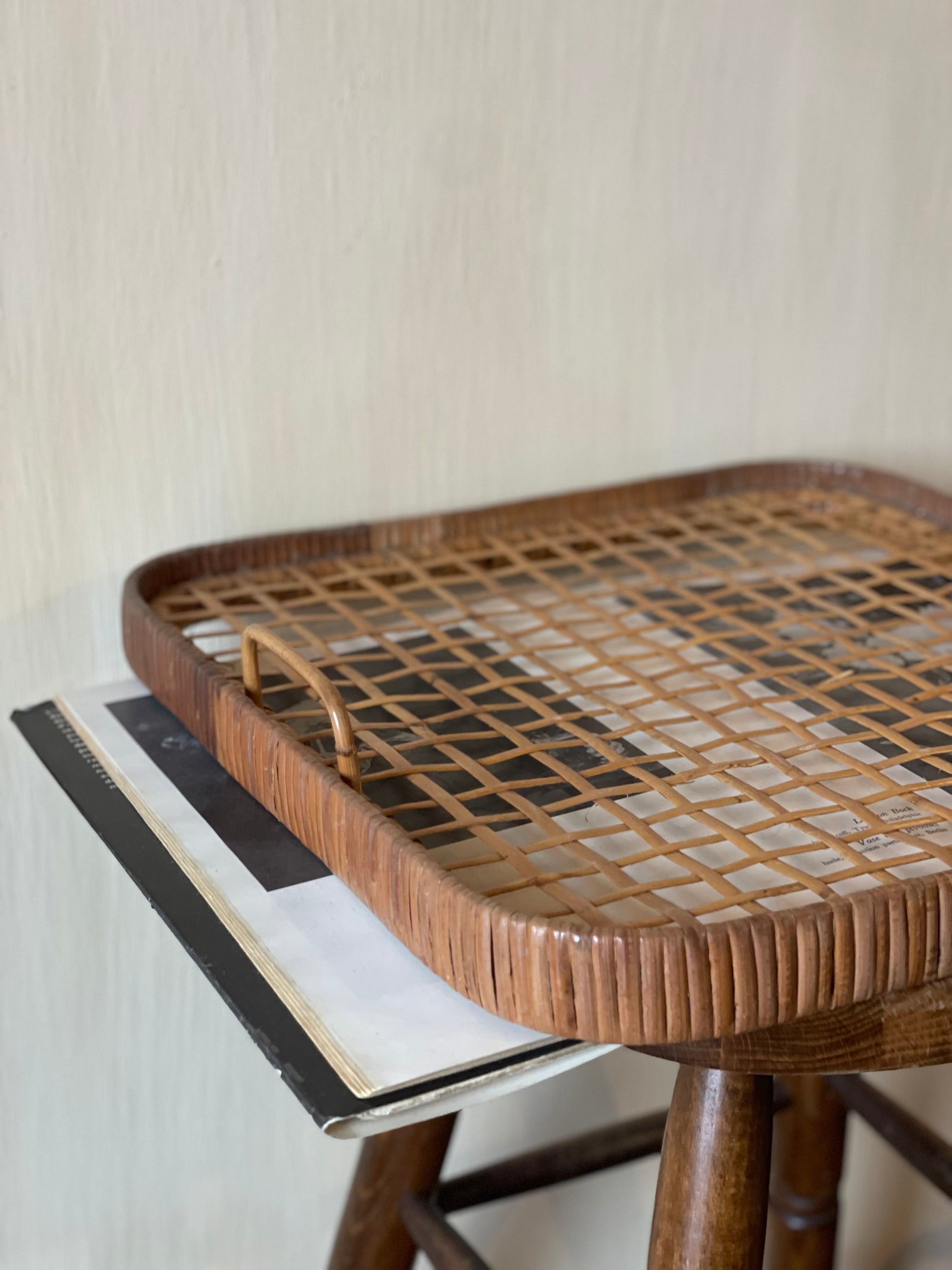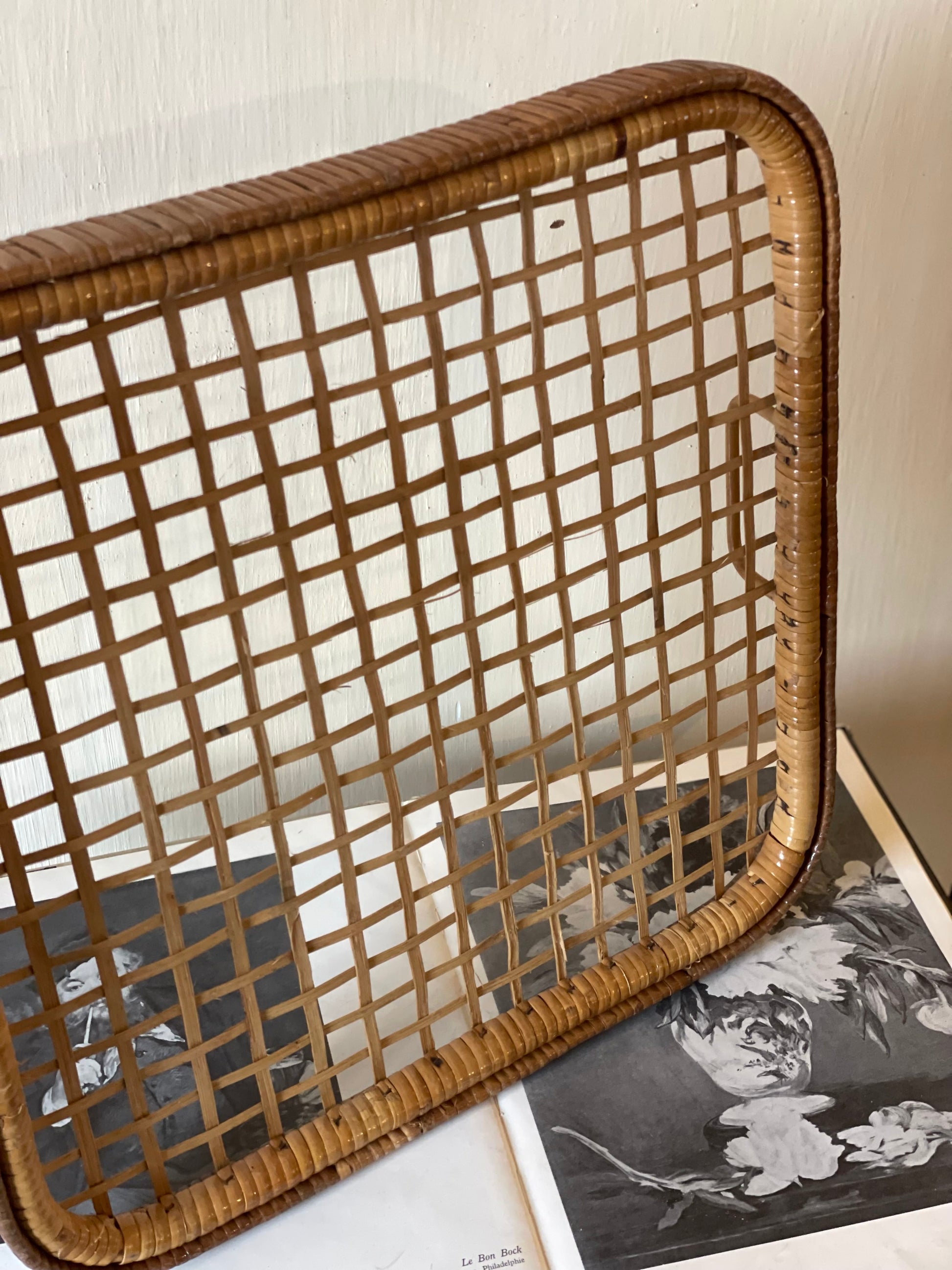 Platou mare vintage servire din ratan și bambus