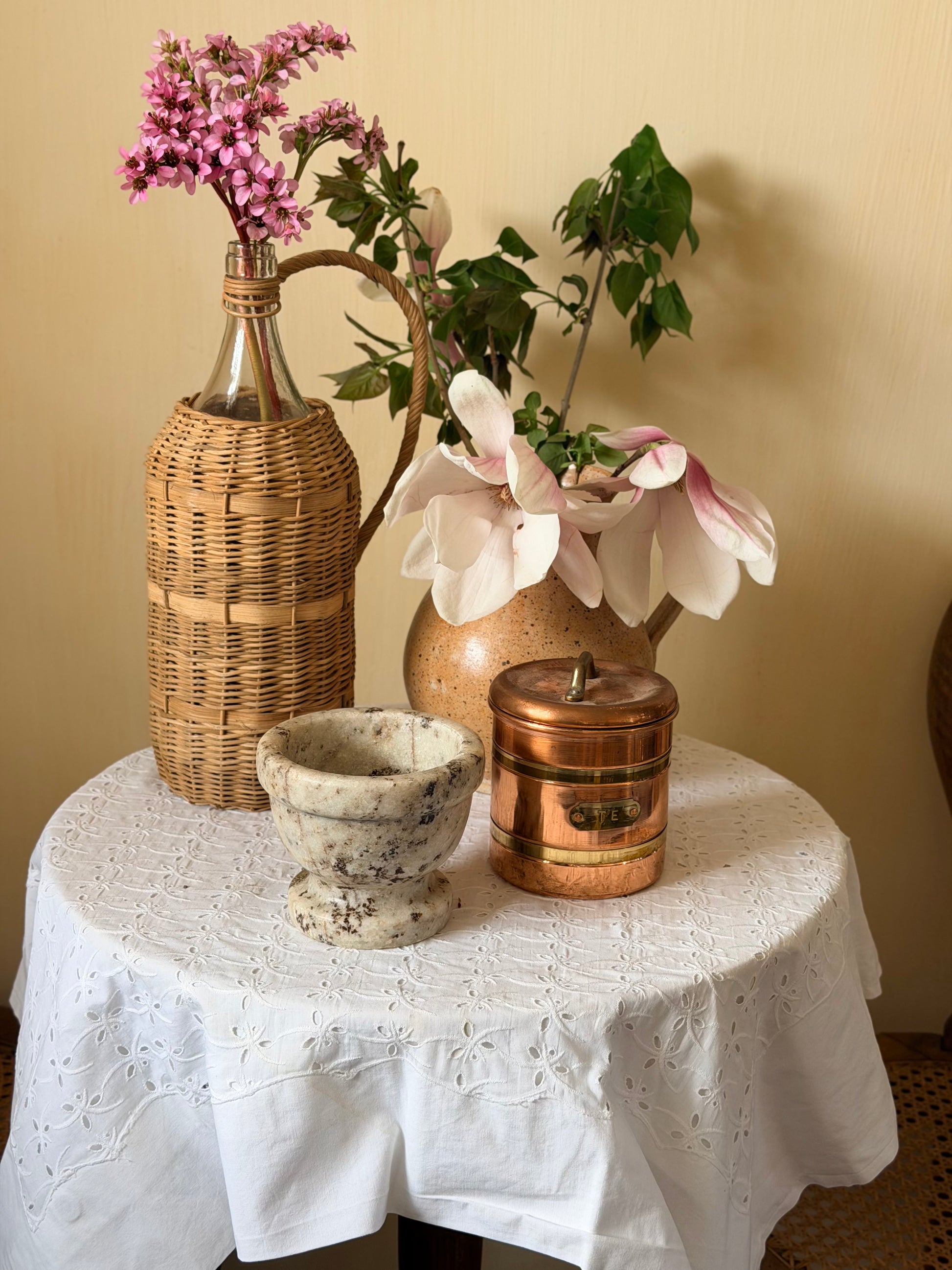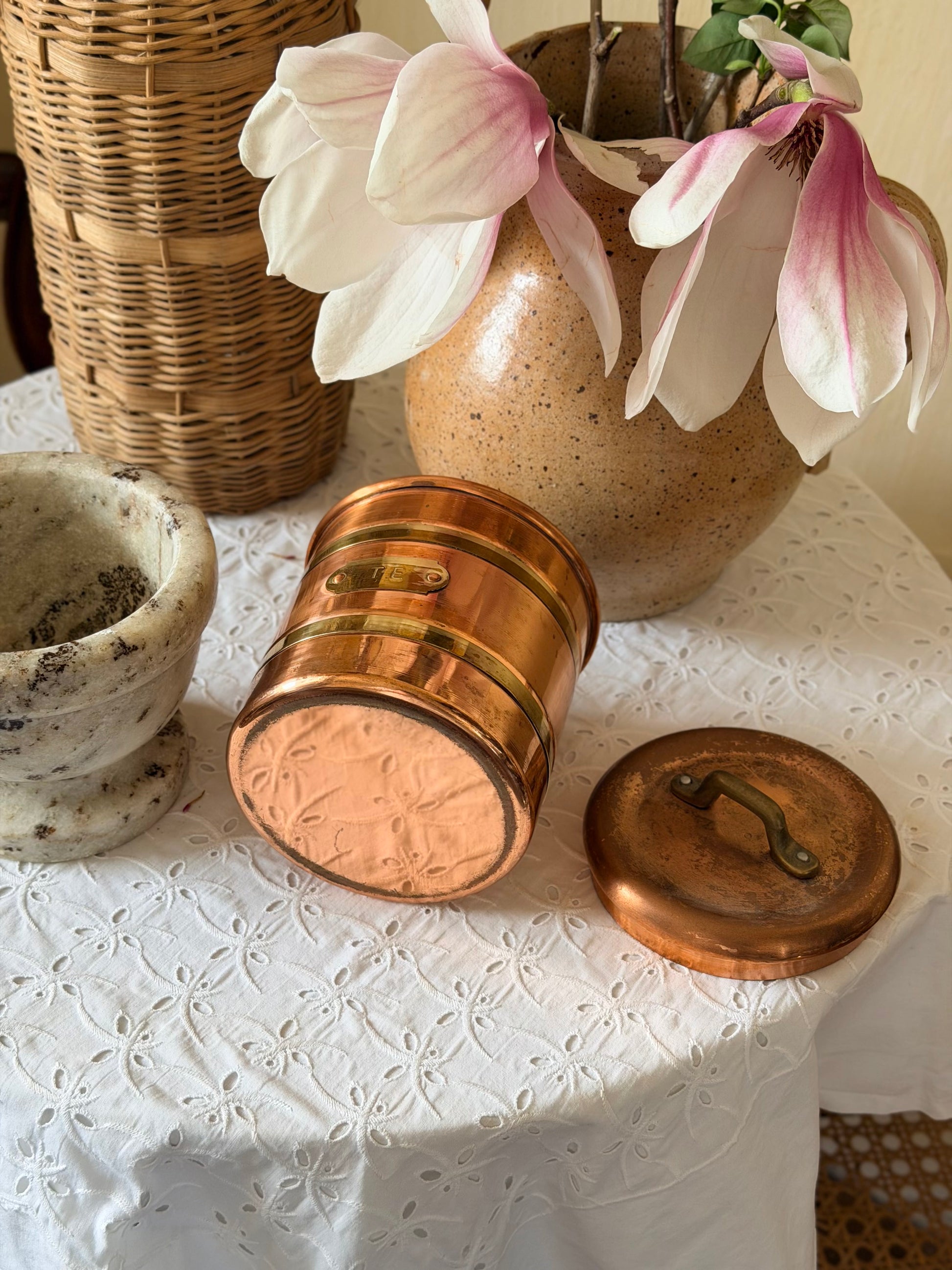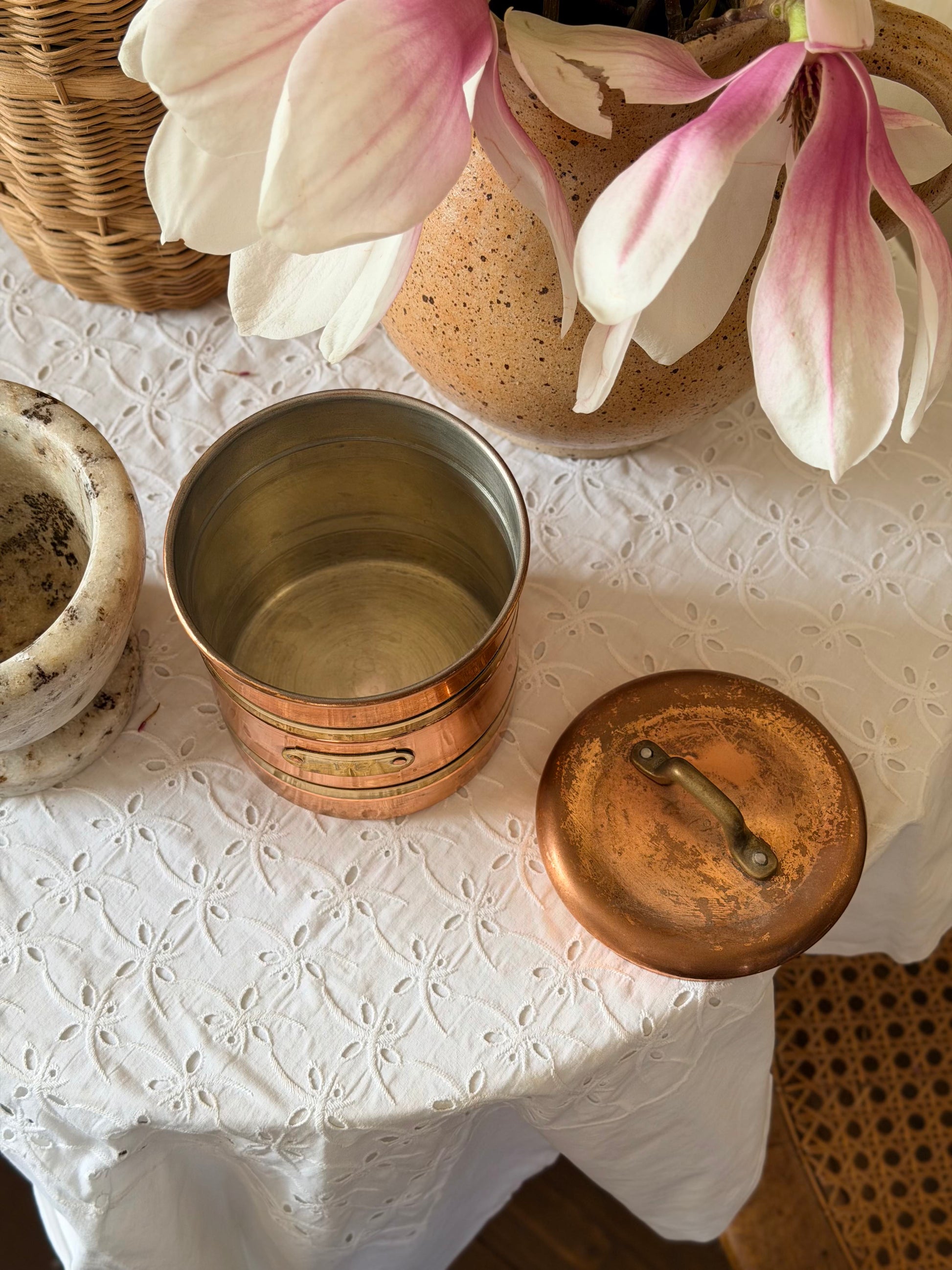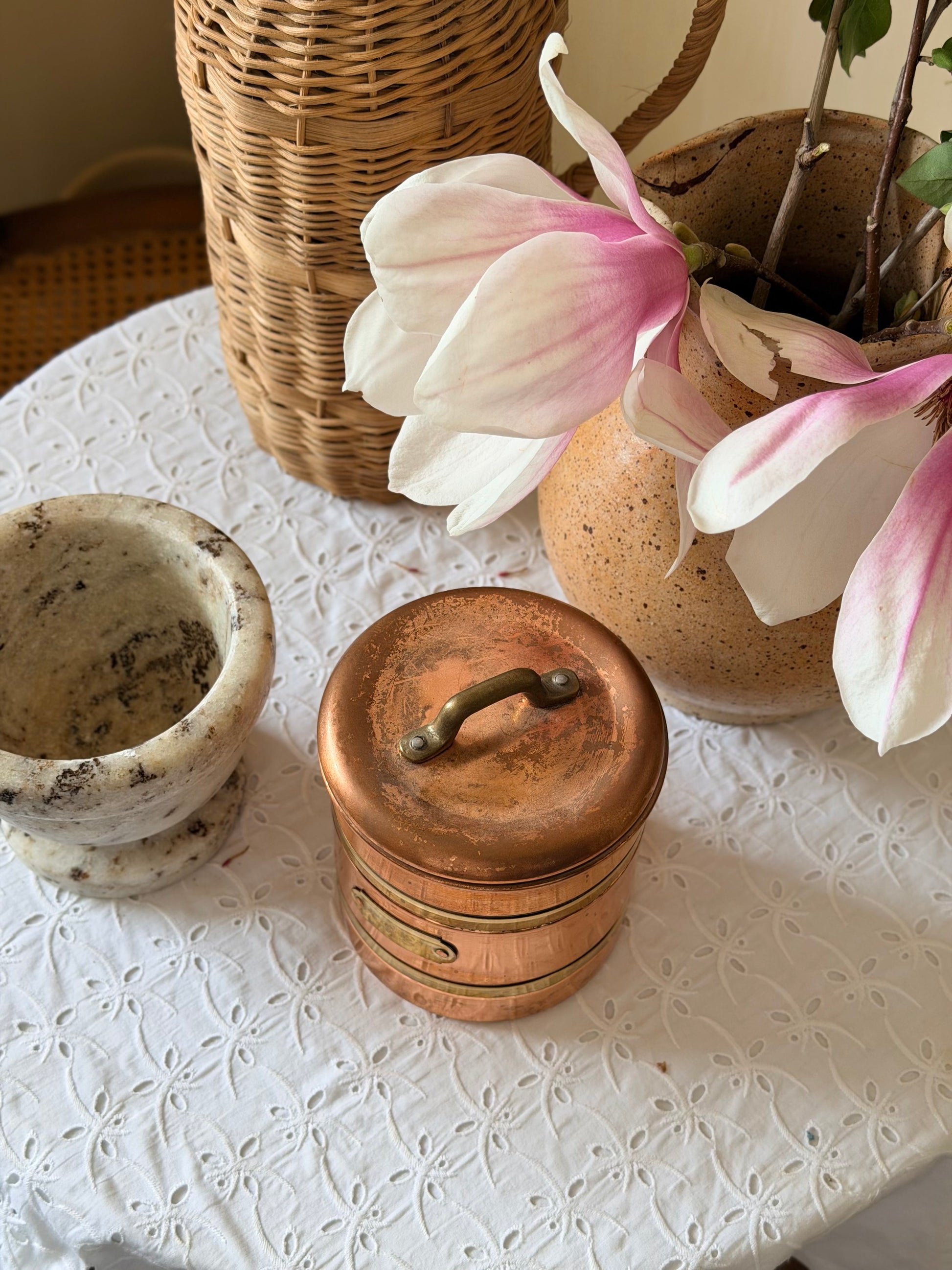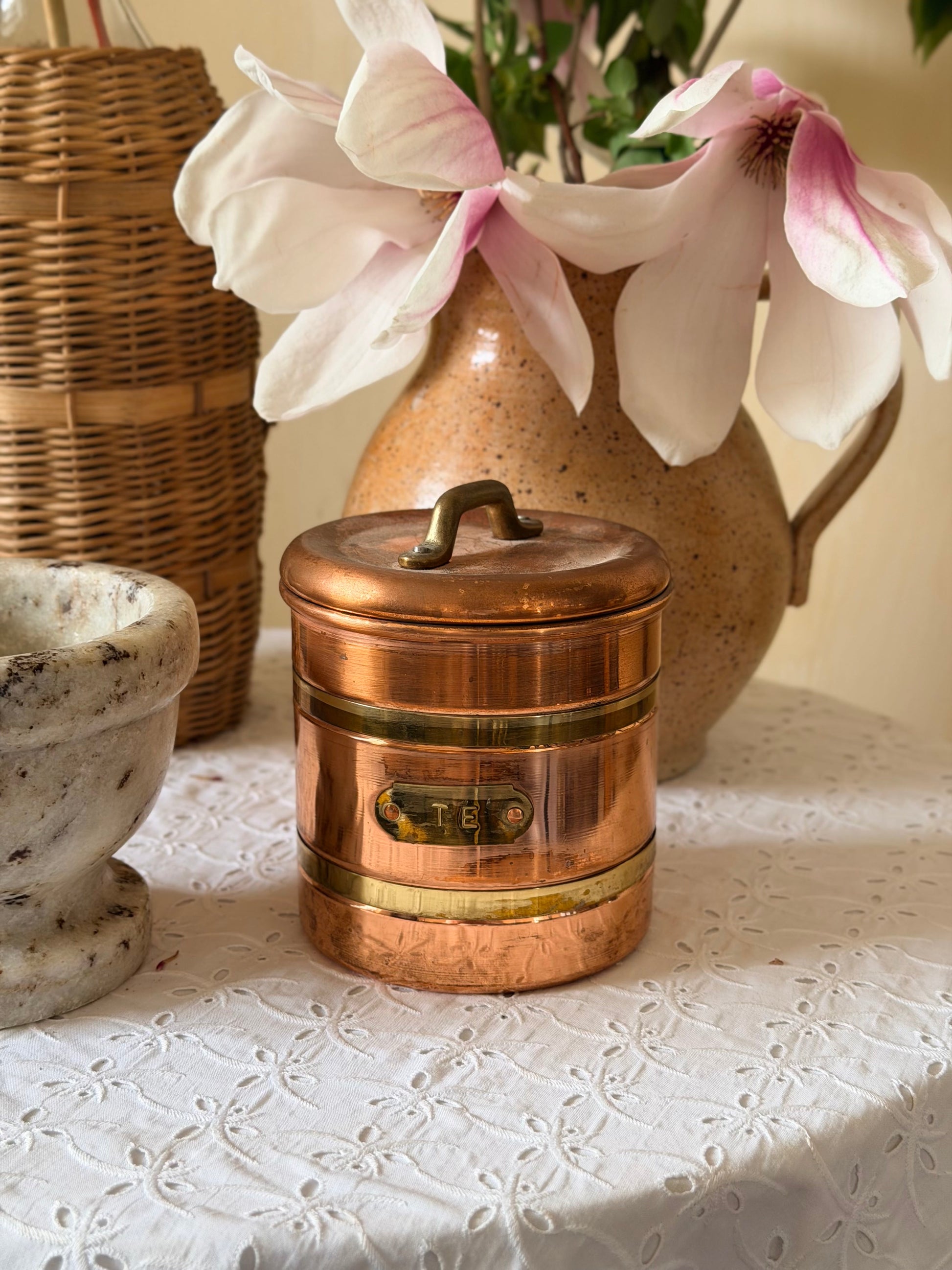 Recipient vintage din cupru și alamă, realizat de prestigioasa firmă suedeza Dorre în jurul anului 1970. Piesa autentică cu patină naturală care reflectă frumusețea vârstei sale. Interiorul este sigur pentru folosire, perfect pentru depozitarea ceaiului sau ca obiect decorativ de colecție. Craftsmanship suedez de calitate superioară, caracteristic mărcii Dorre, cunoscute pentru durabilitate și design atemporal.