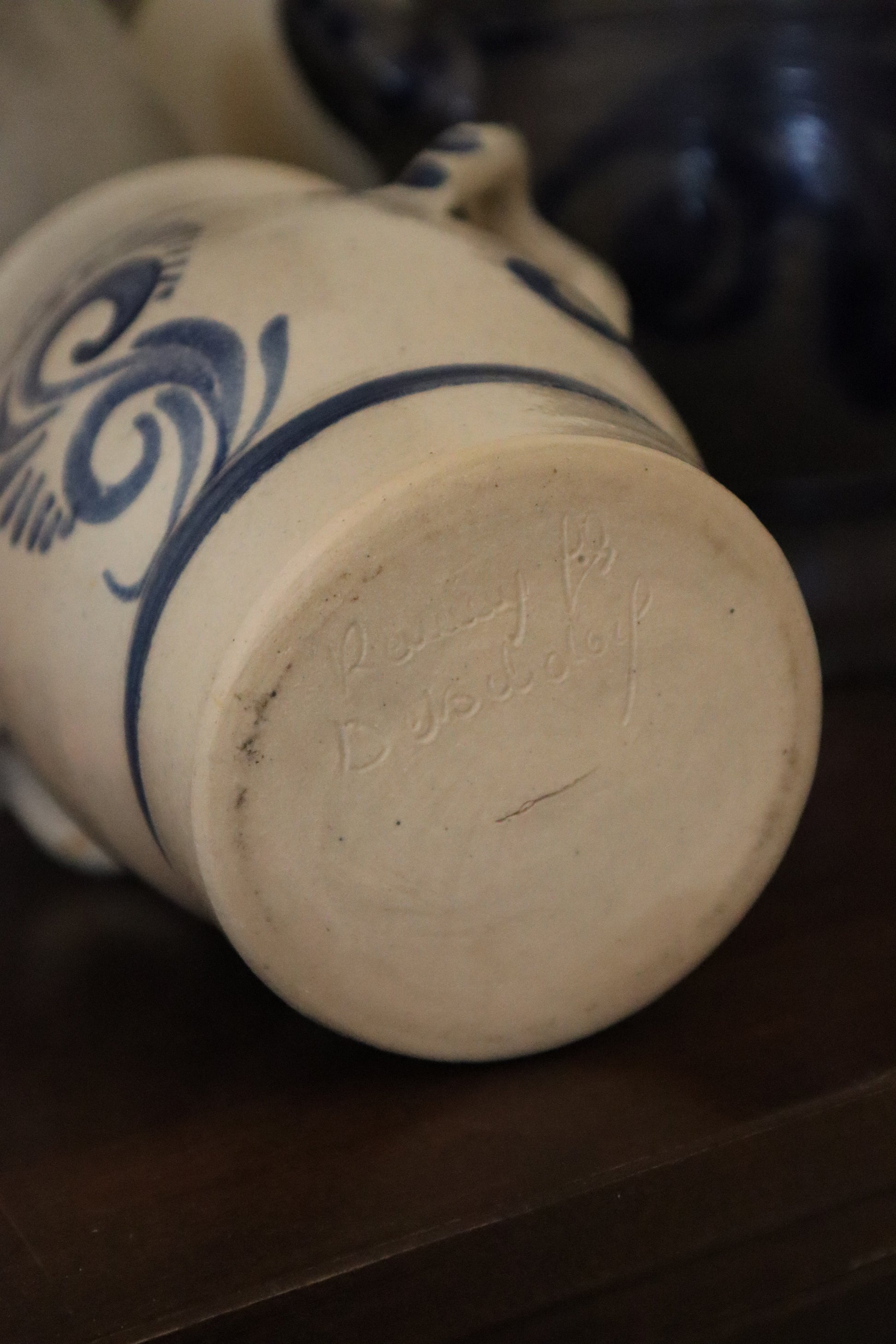 Recipient vintage din lut motive florale, semnat.