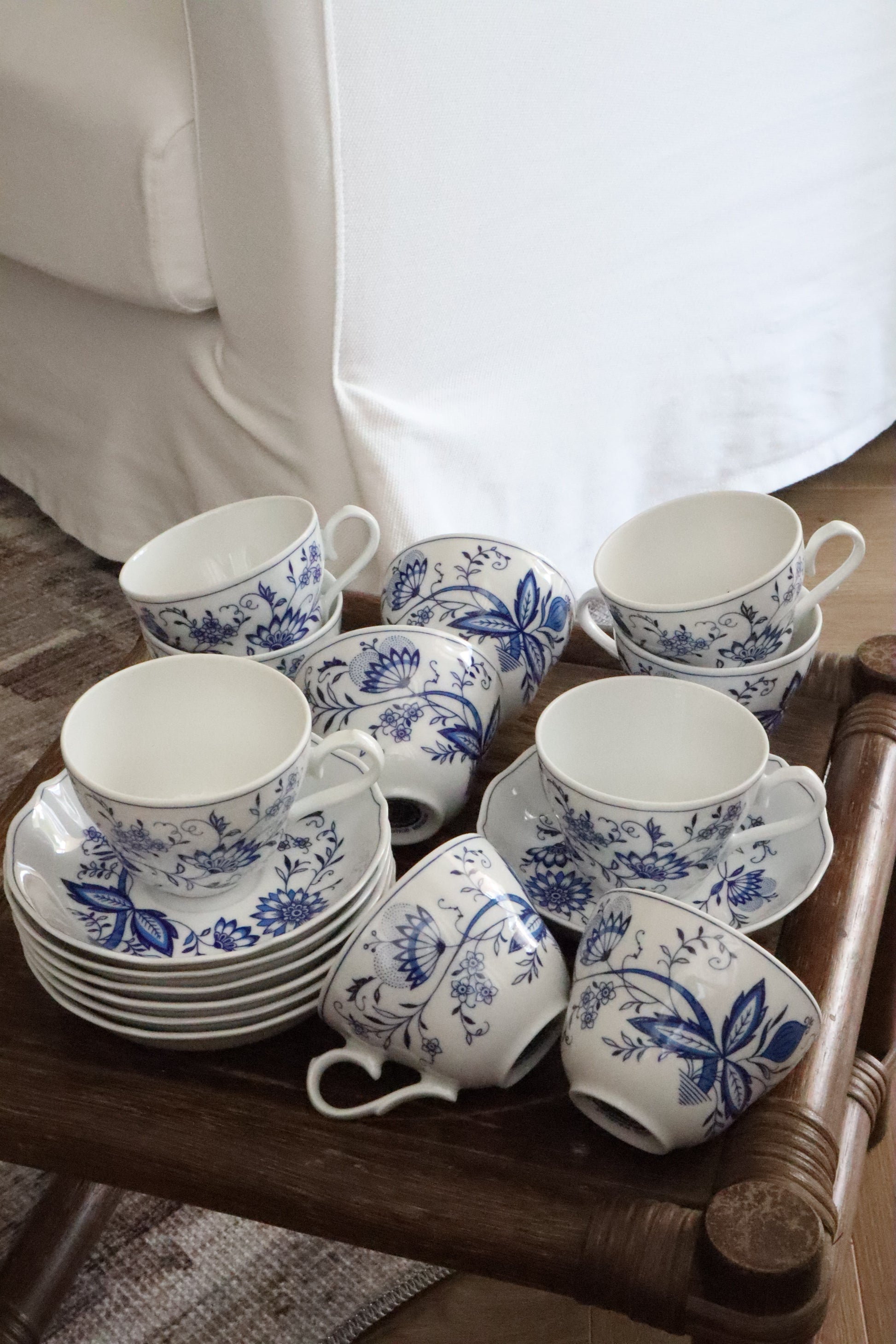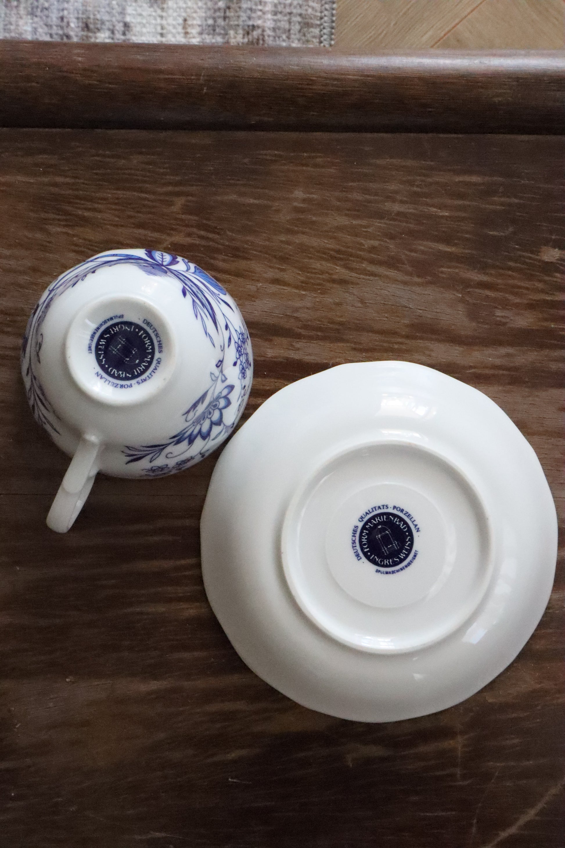 Cană și farfurie vintage din porțelan Blue Onion colecția Form Marienbad Ingres Weiss