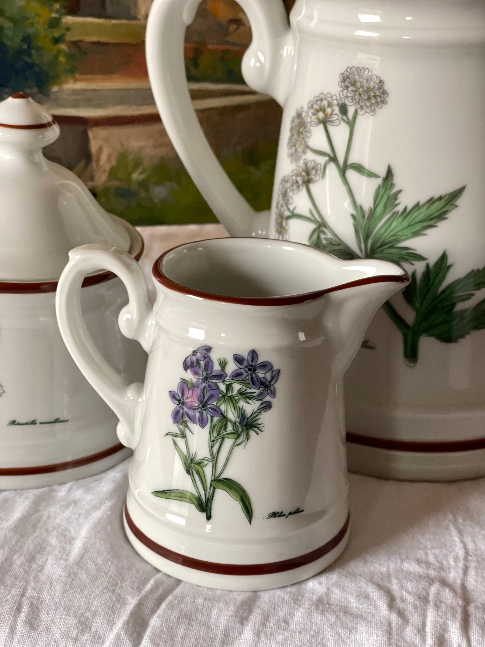 Set compus din ceainic, latieră și zaharniță din porțelan, motiv floral.