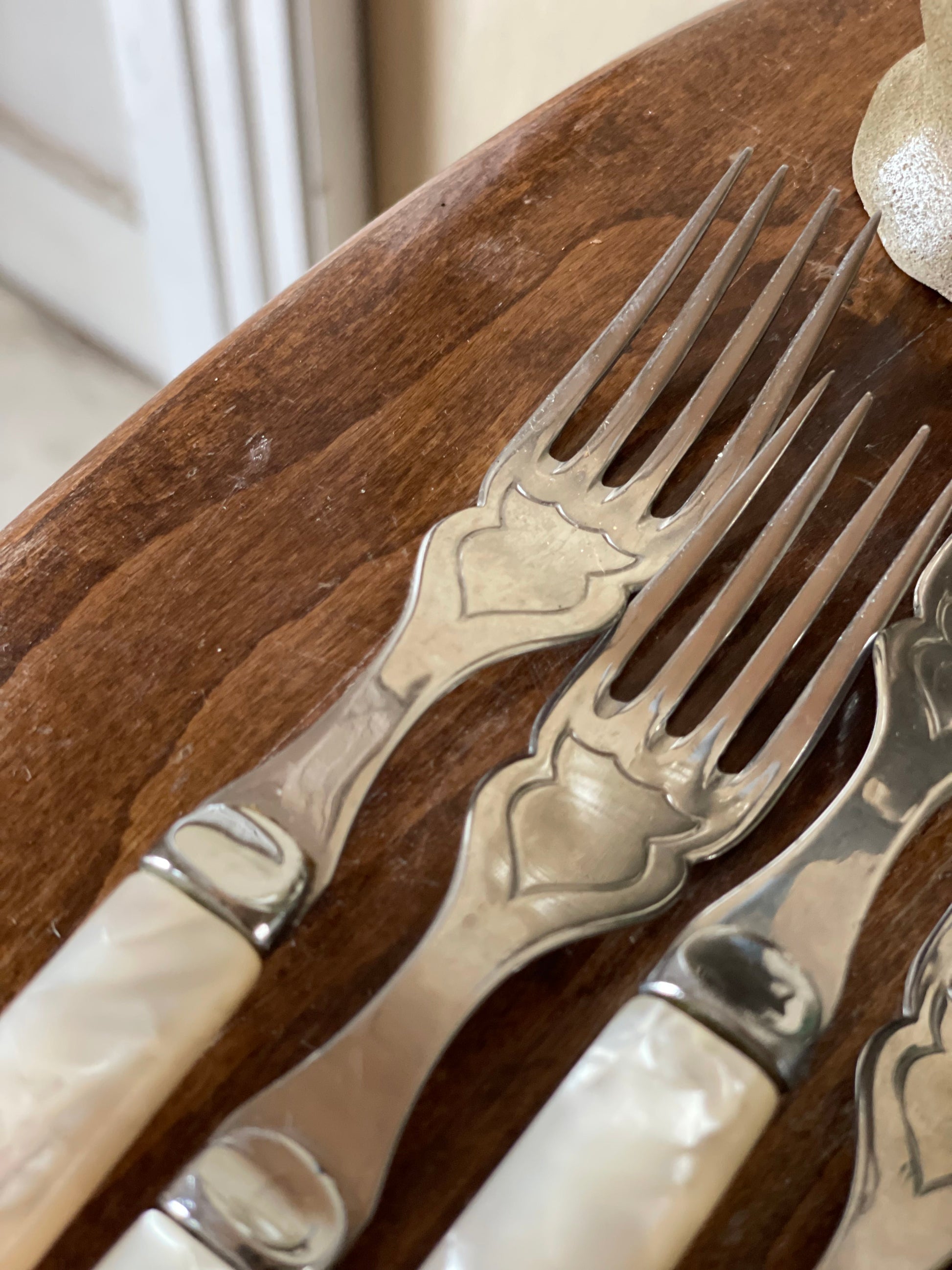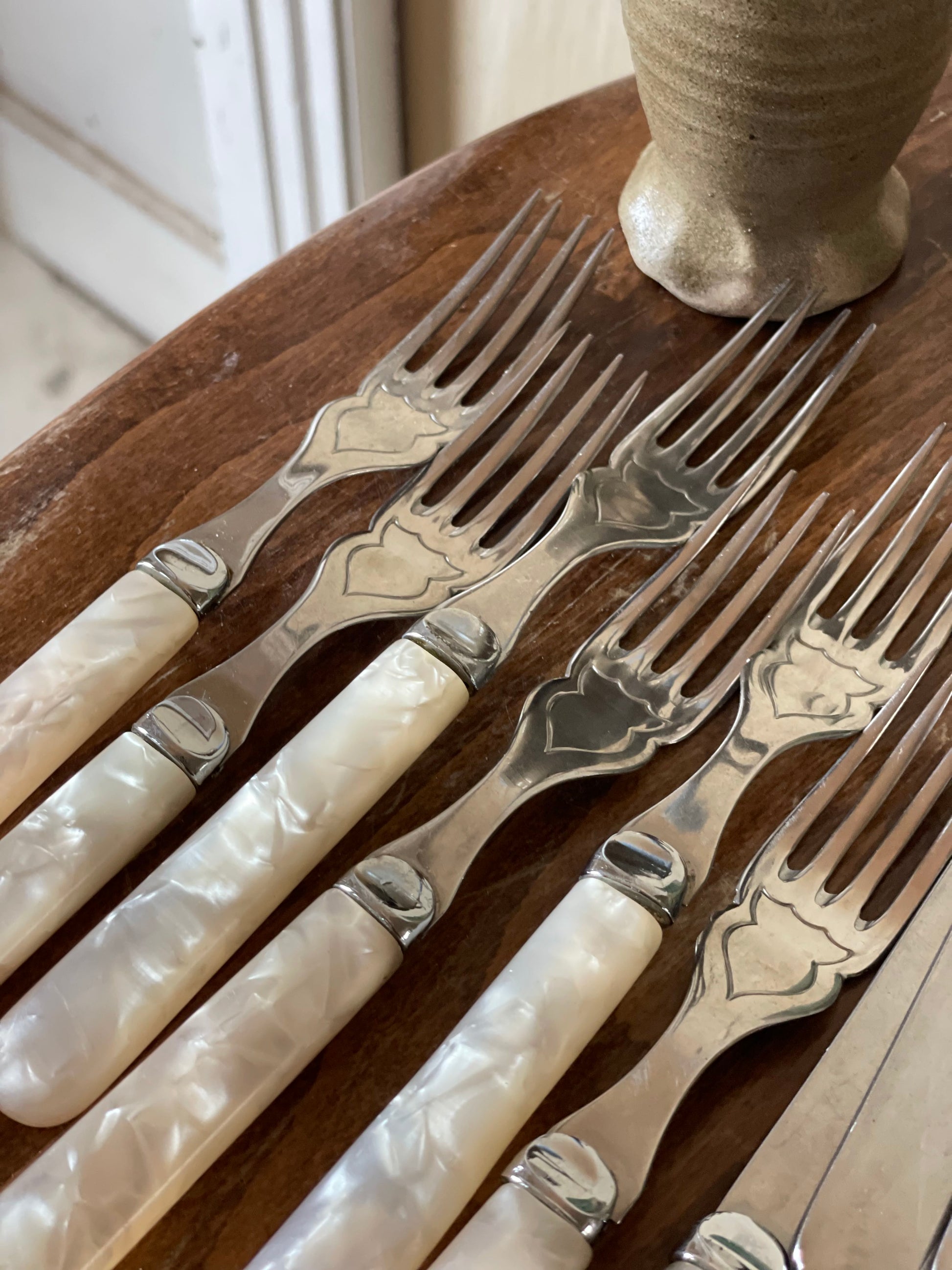 Set tacâmuri argintate cu mâner din sidef