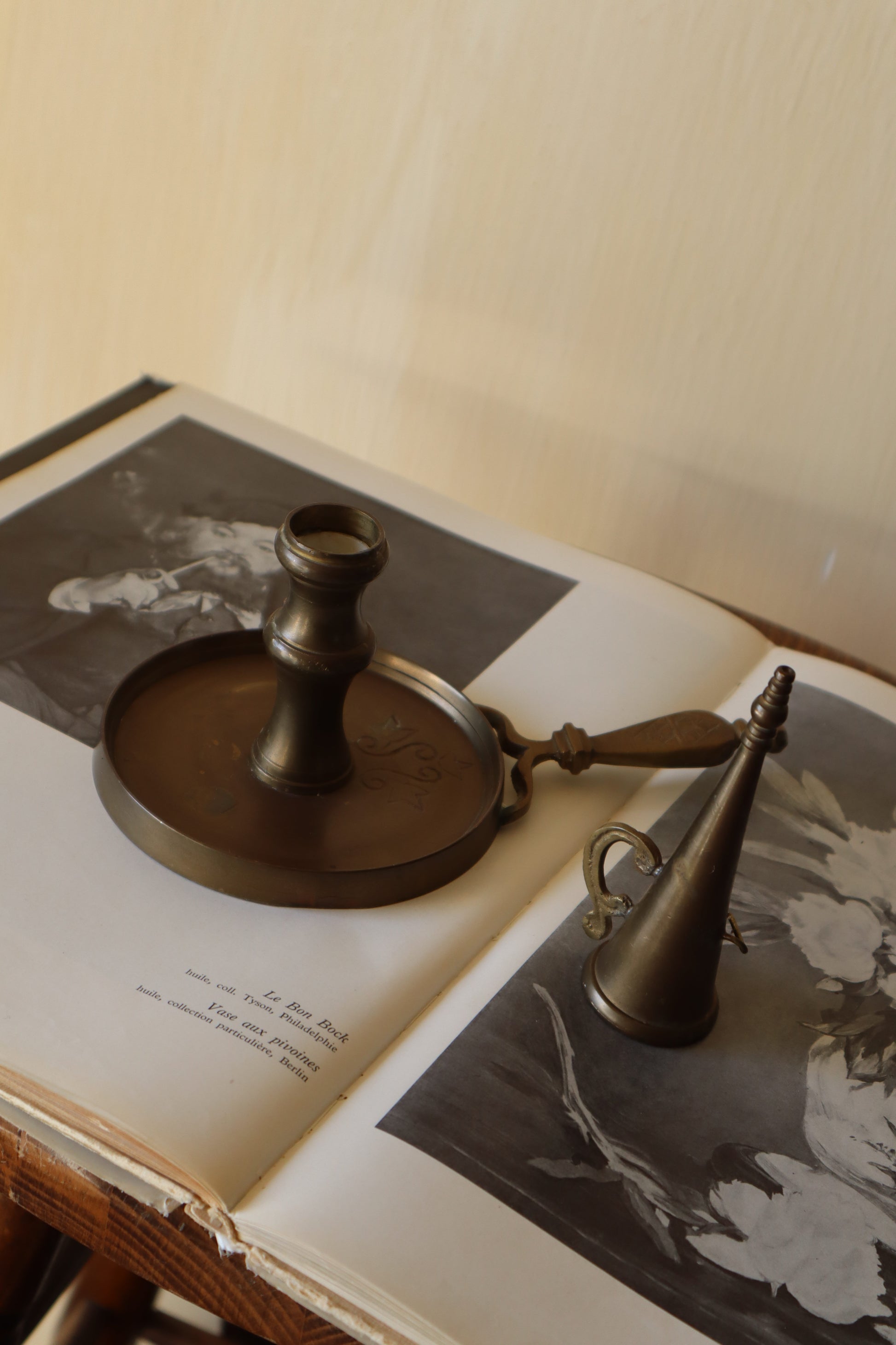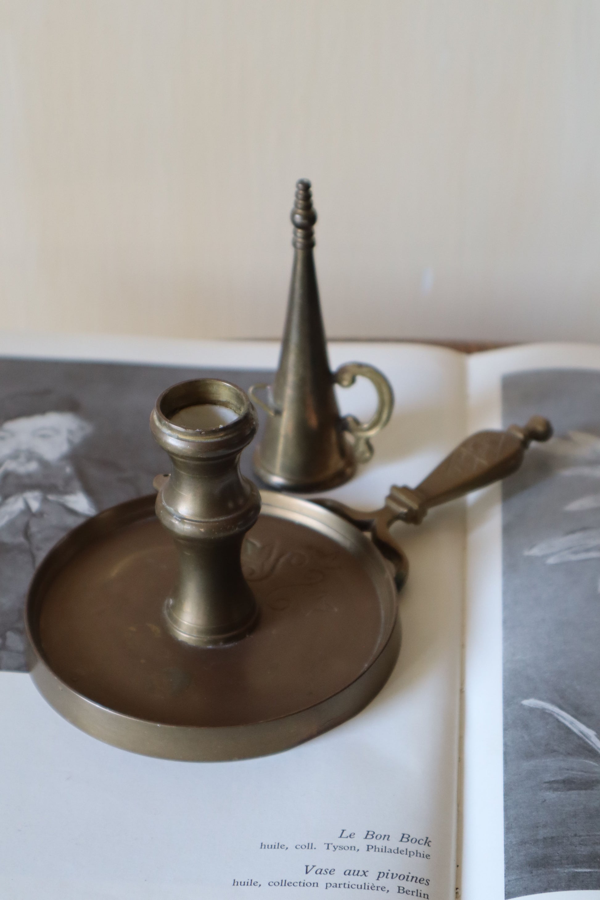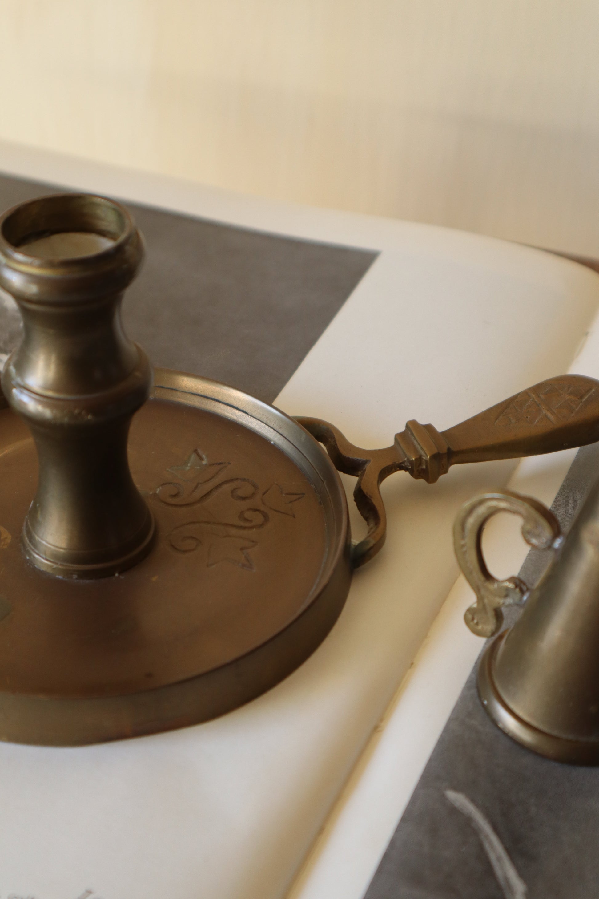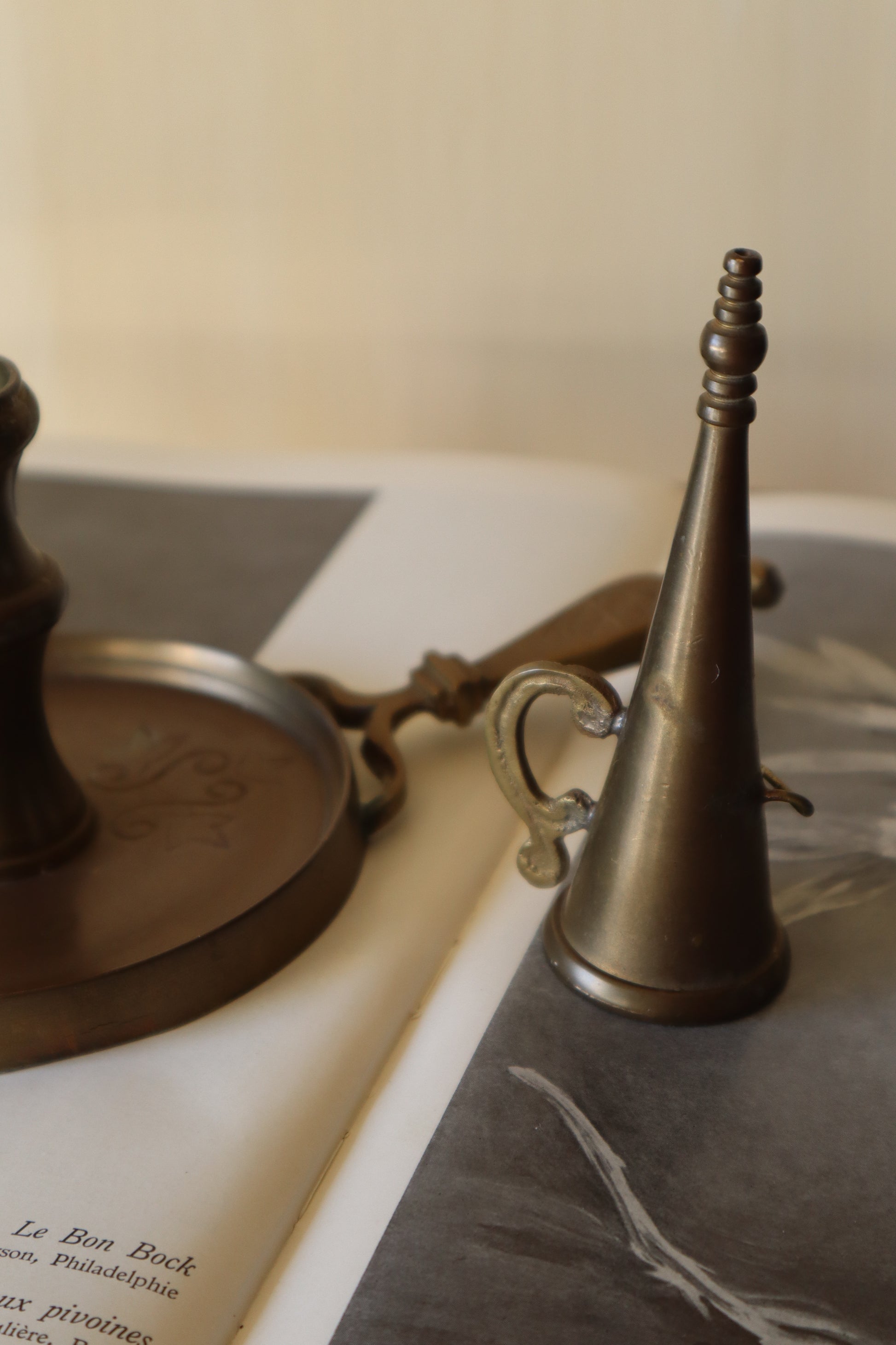 Suport și stingător de lumânări indian din alamă