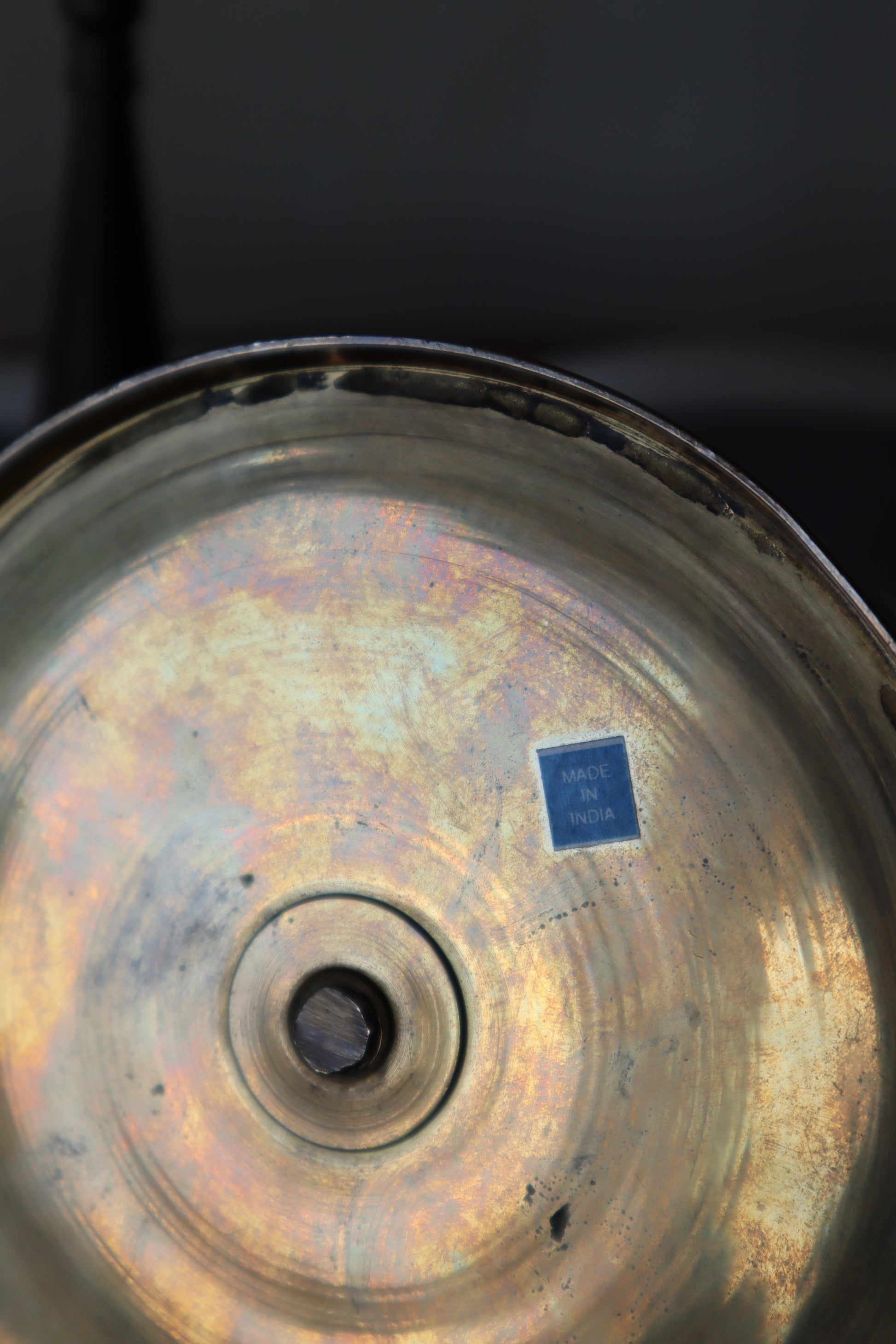 Suport din alamă antică grea cu inserții florale+geometrice.