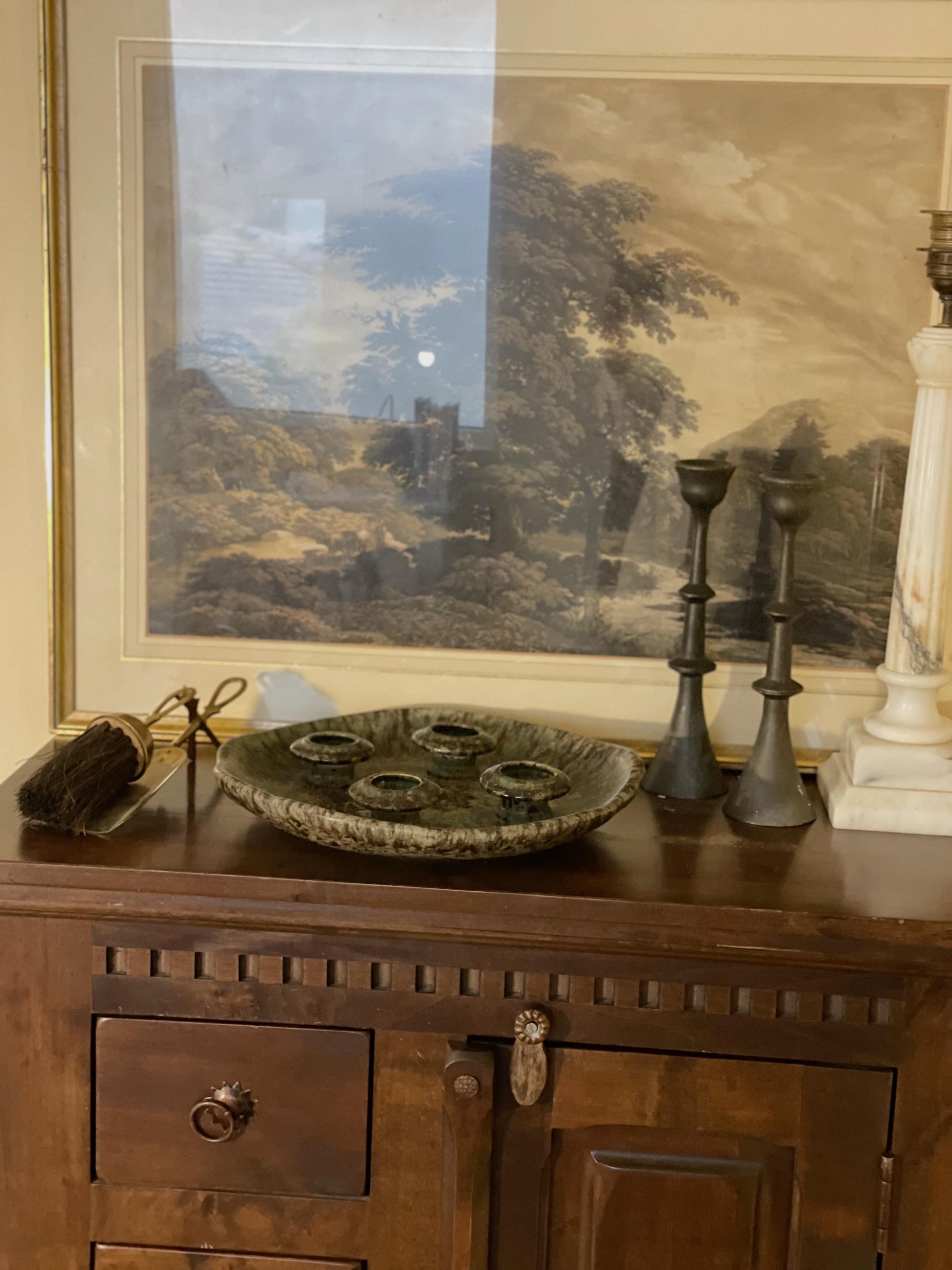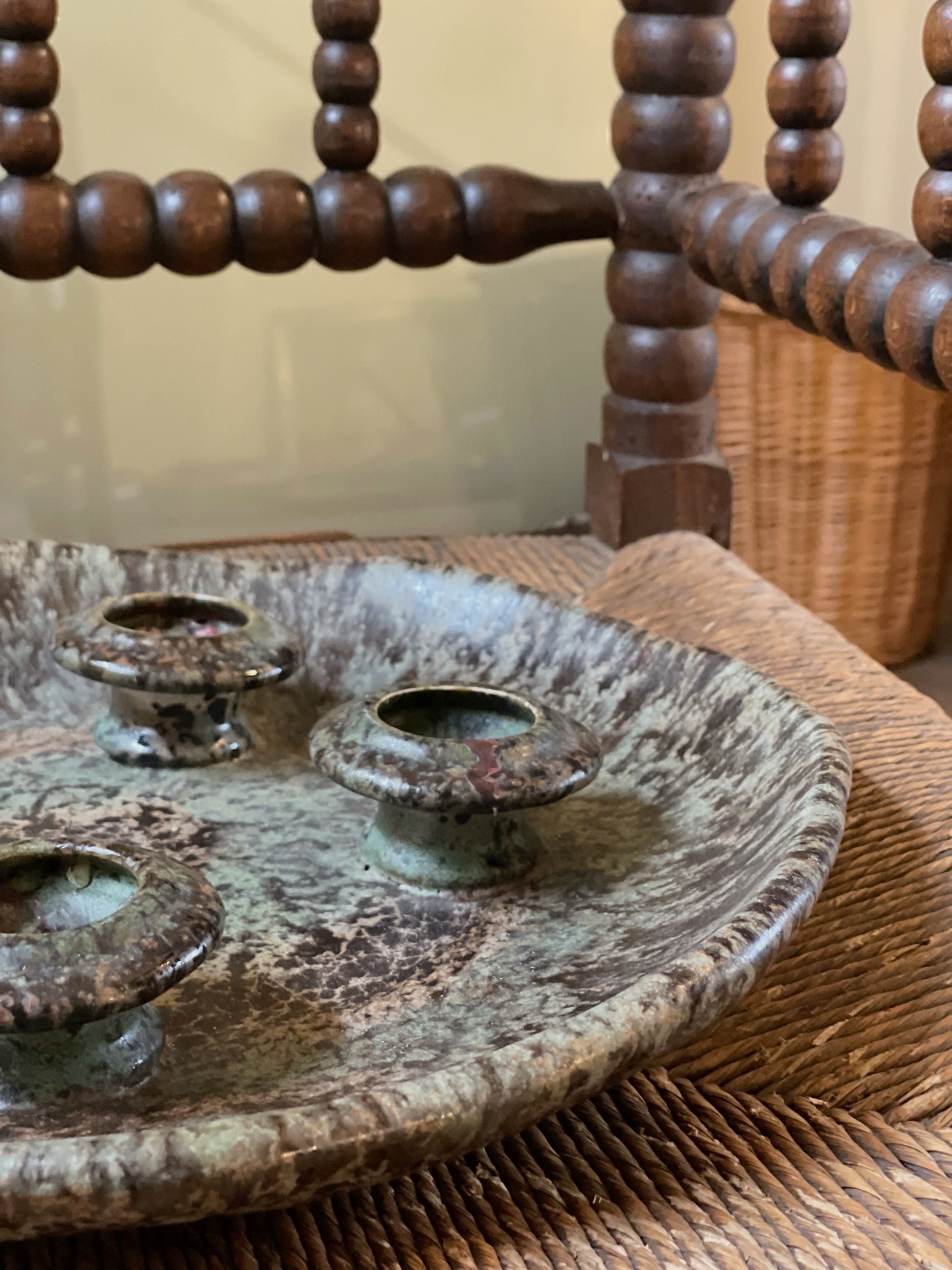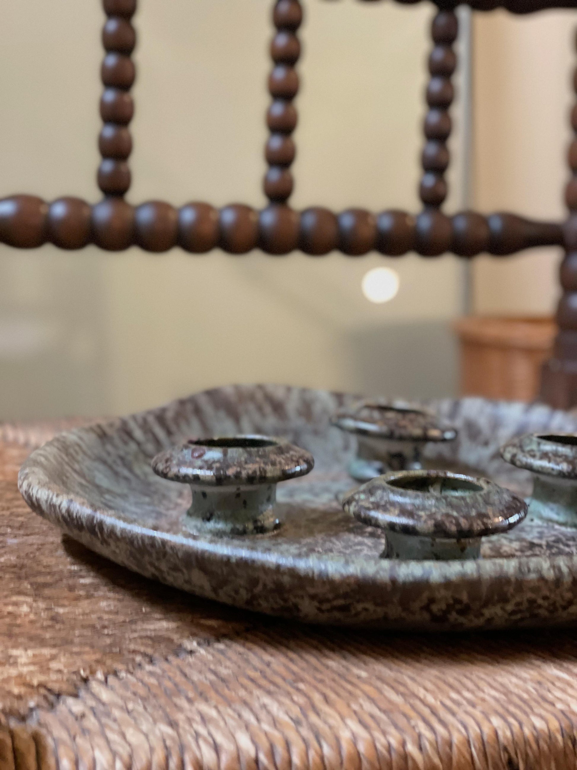 Suport pentru lumânări lucrat manual asimetric, obiect de colecție.