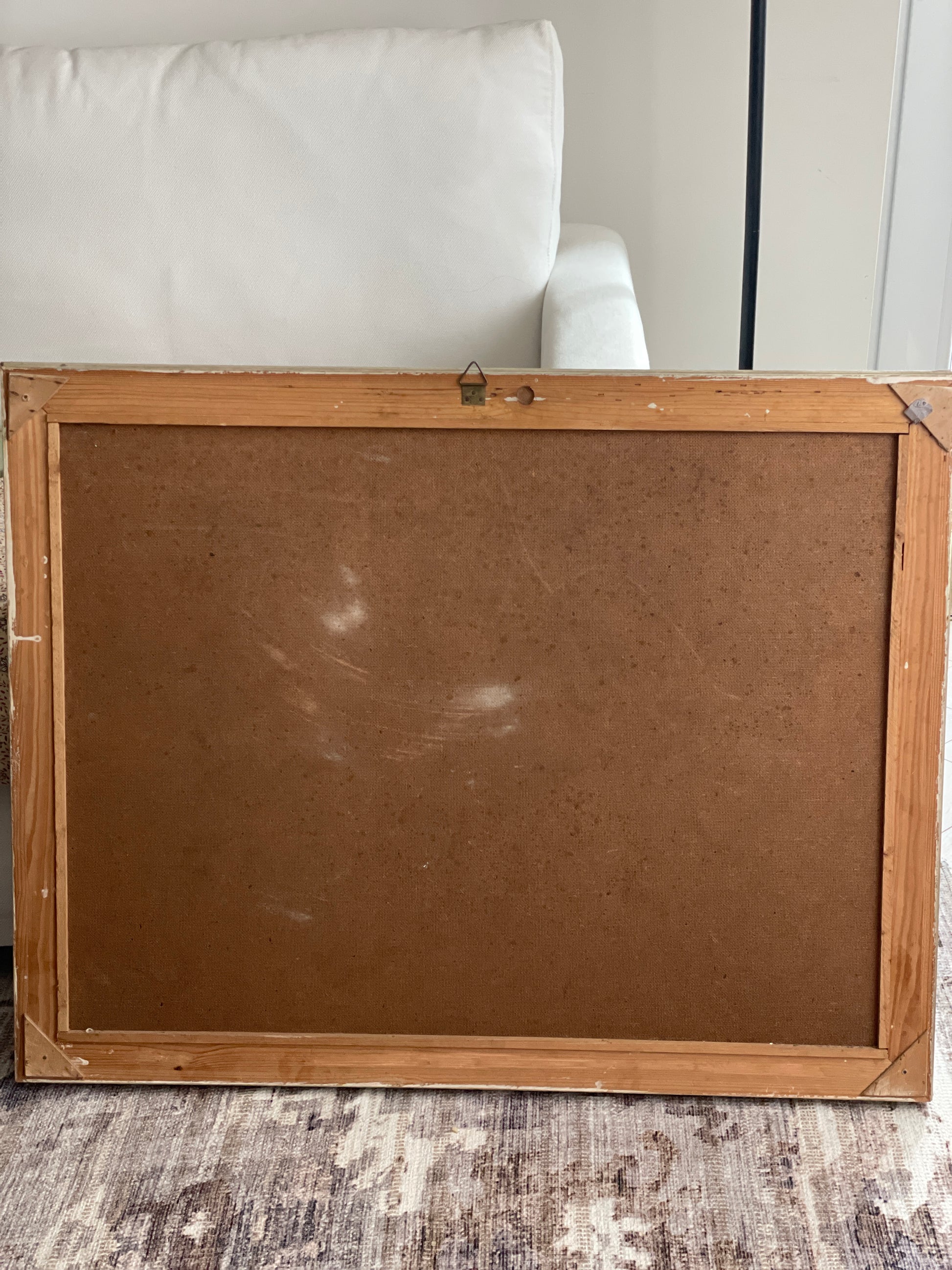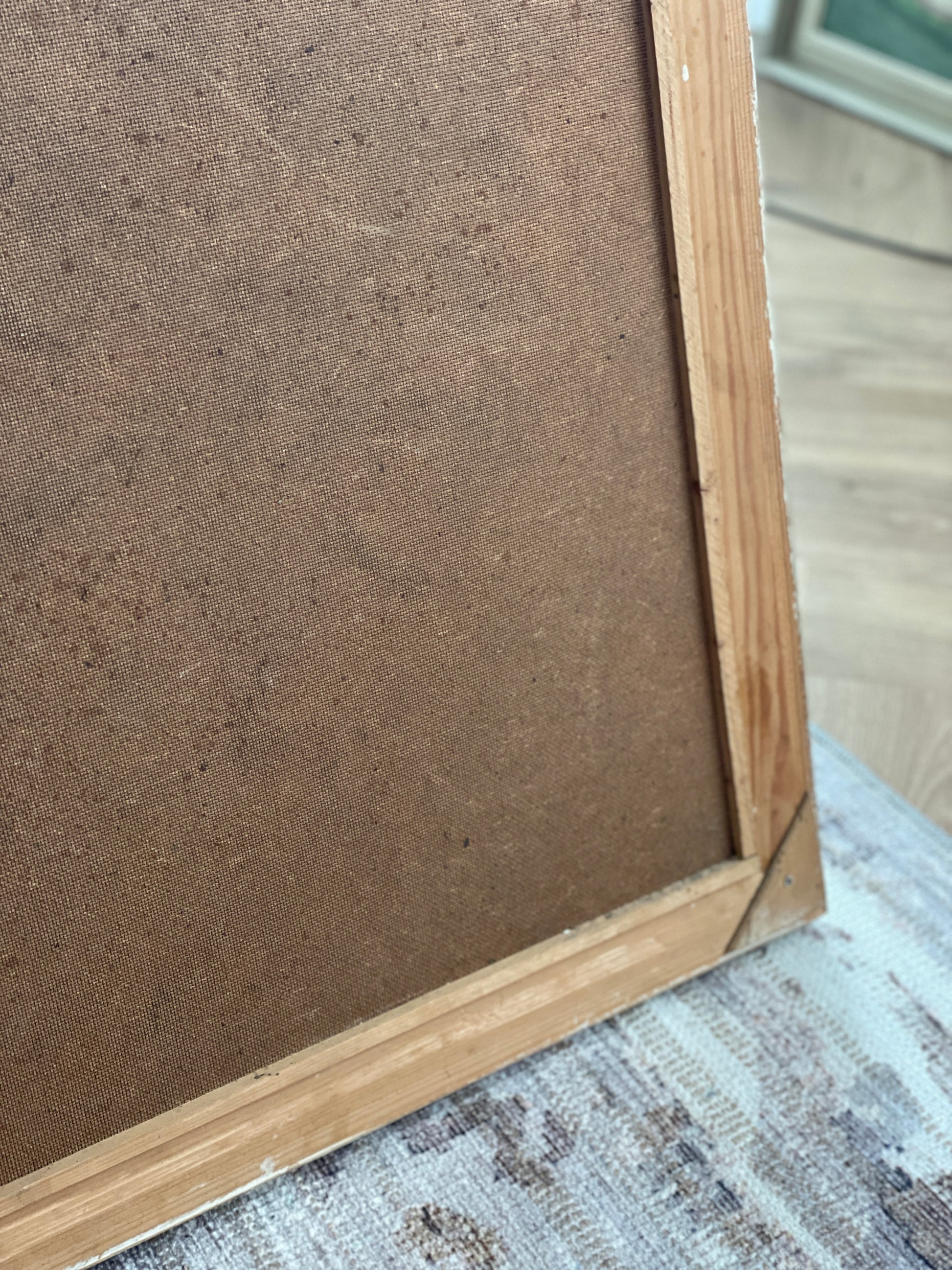 Ramă de lemn, pictură pe pânză montată pe șasiu de lemn, semnat.