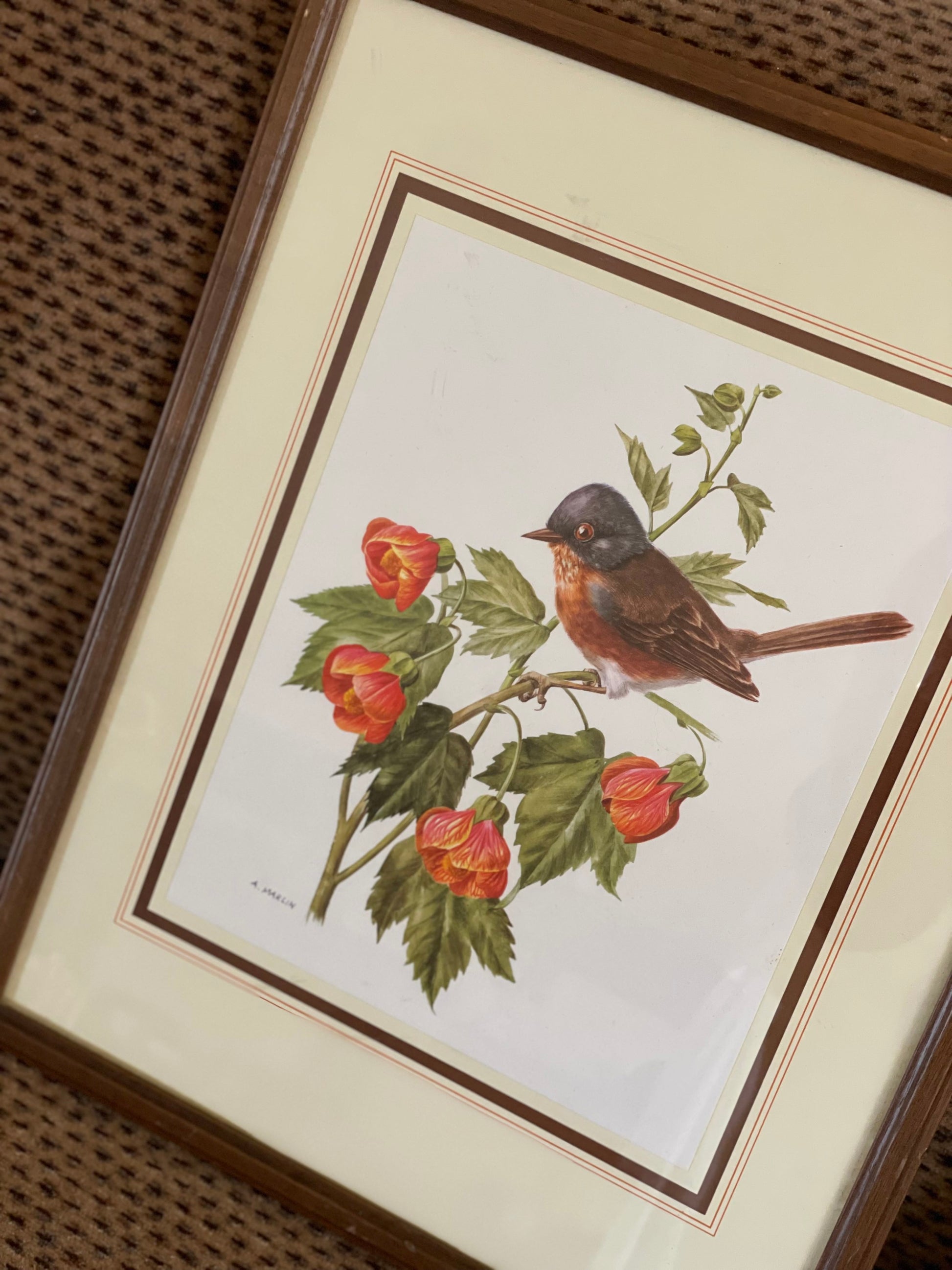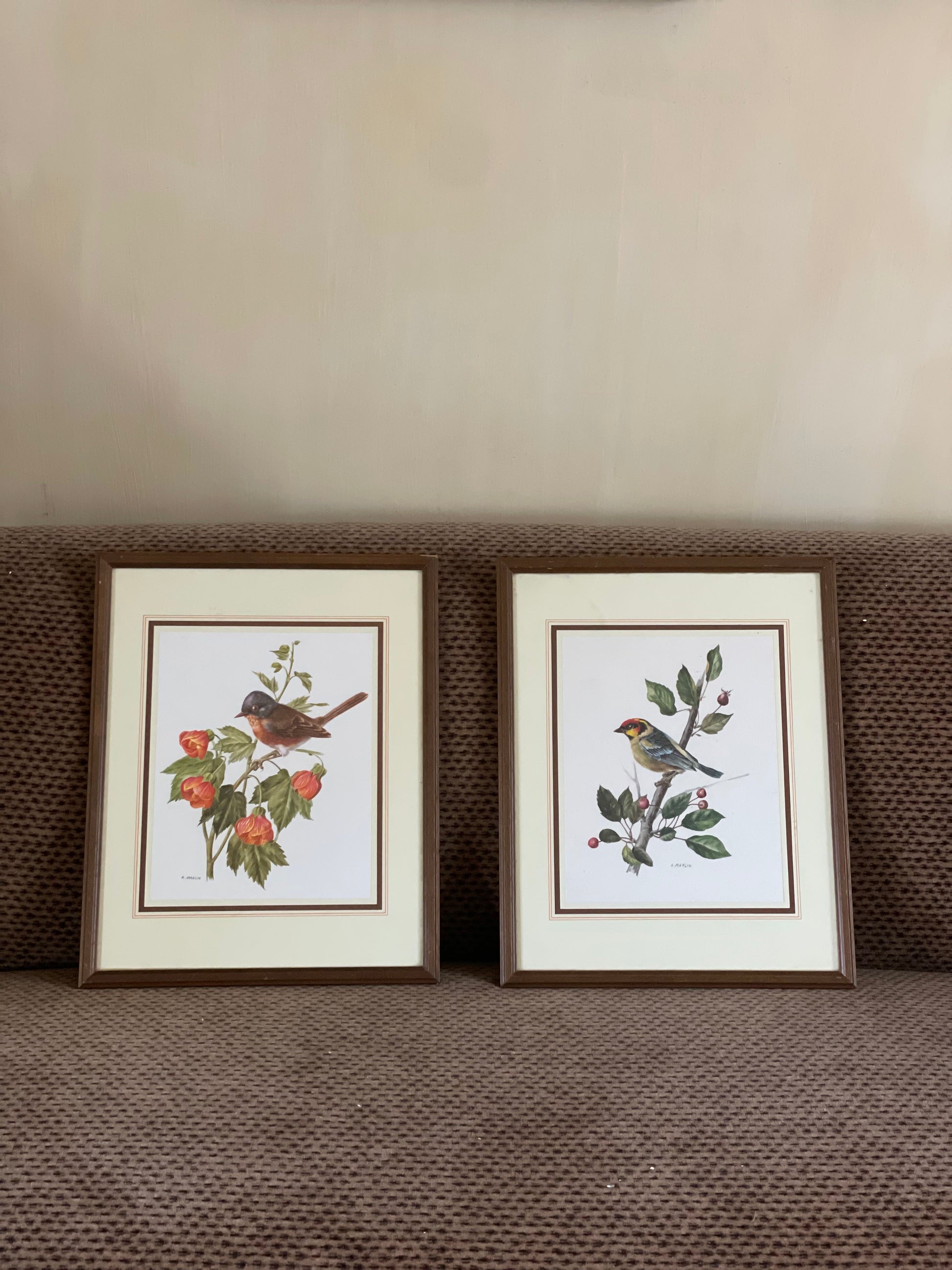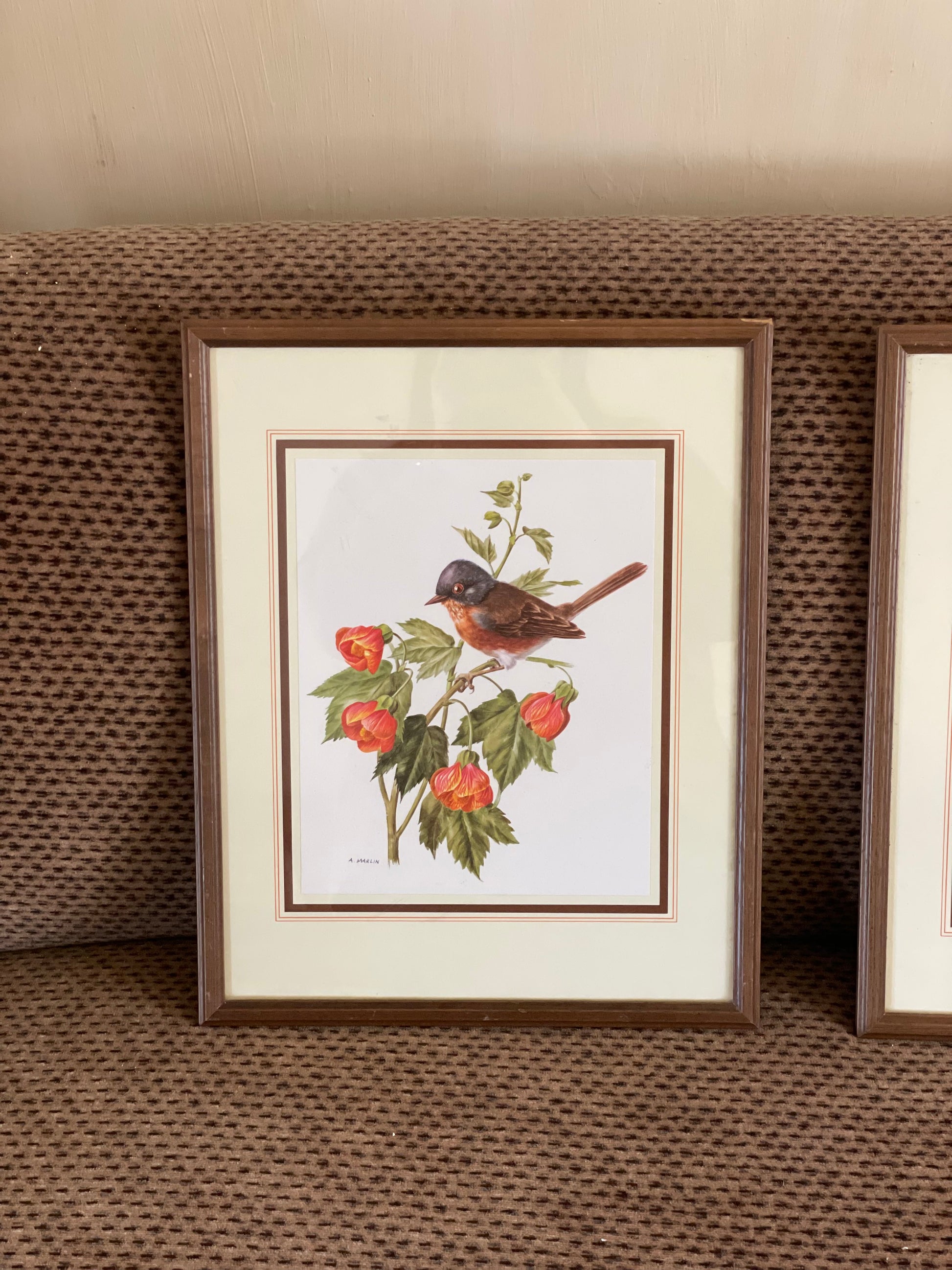 Tablouri vintage tema păsări, înrămate, semnate A. Marlin.