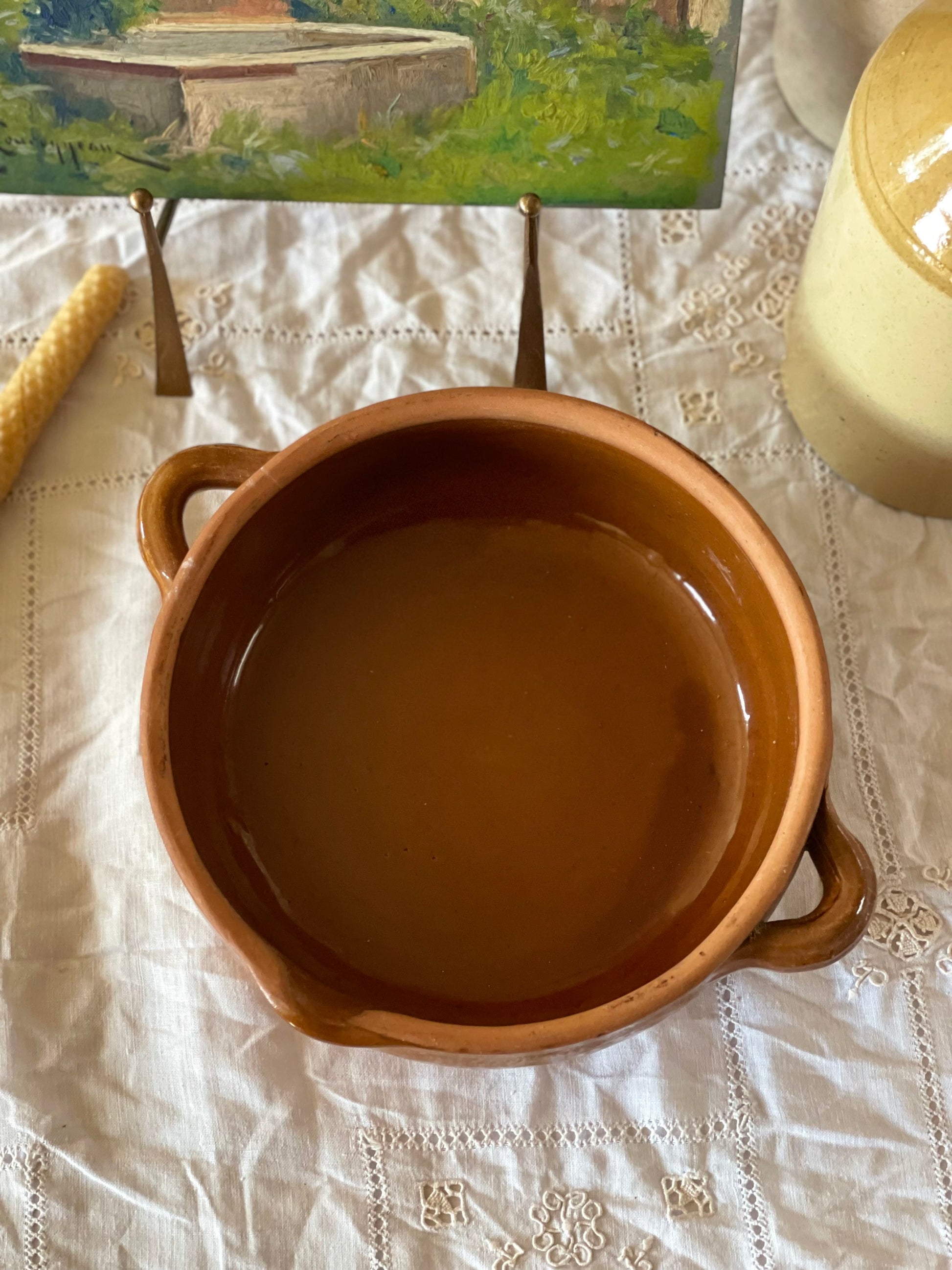 Recipient din ceramică franceză, ideală pentru servire și utilizare în cuptor. Interiorul glazurat asigură durabilitate și ușurință în curățare, în timp ce cele două mânere ergonomice facilitează manipularea sigură. Prevăzut cu buză de scurgere pentru control optim al lichidelor. O piesă funcțională și elegantă pentru bucătărie.