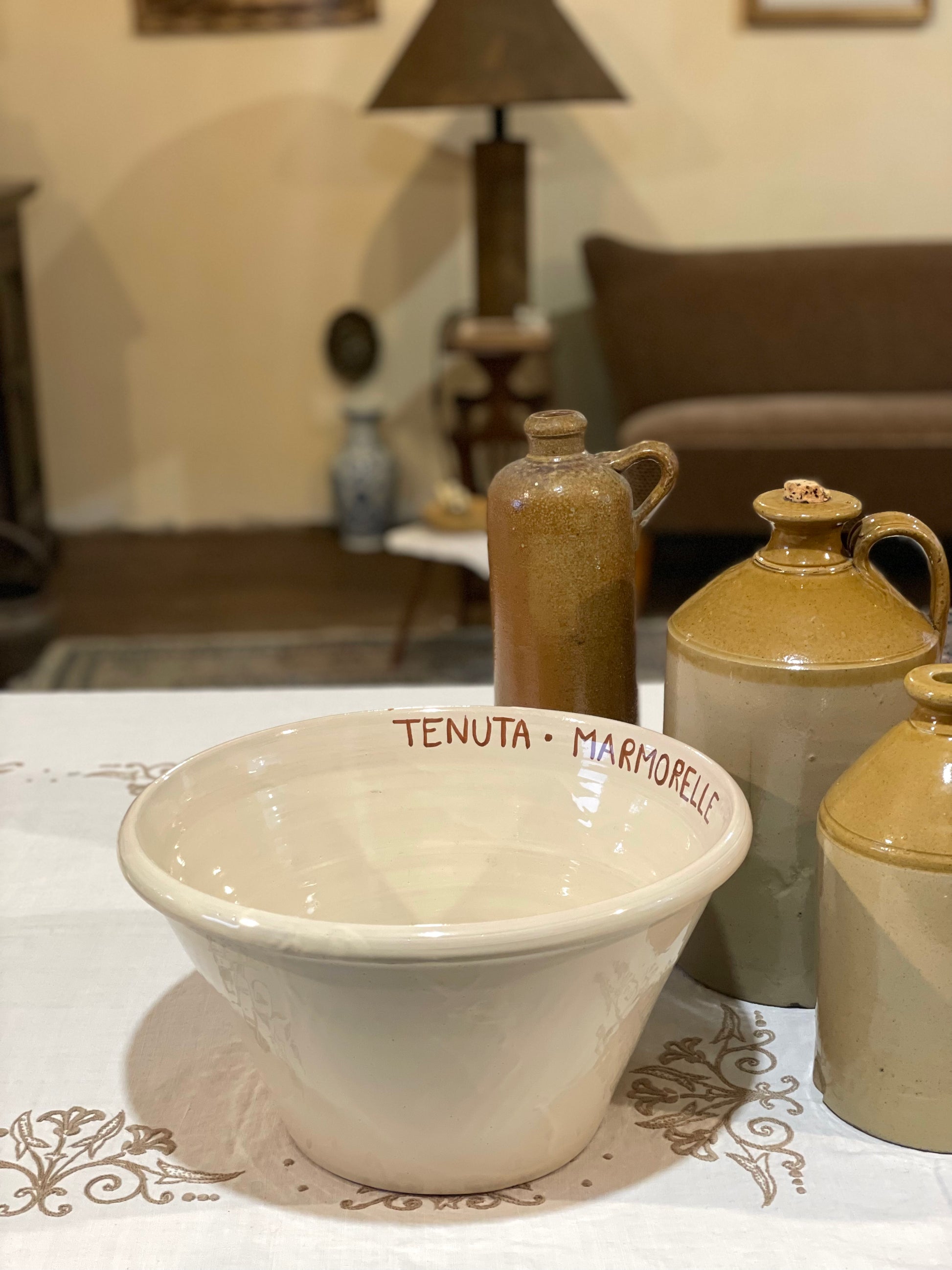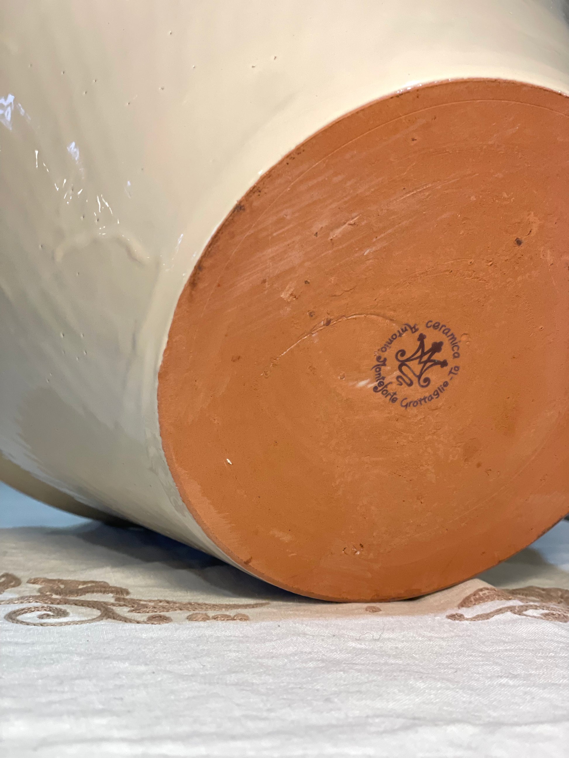 Vas mare crem semnat, din ceramică glazurată, by Antonio Monteforte Grottaglie.